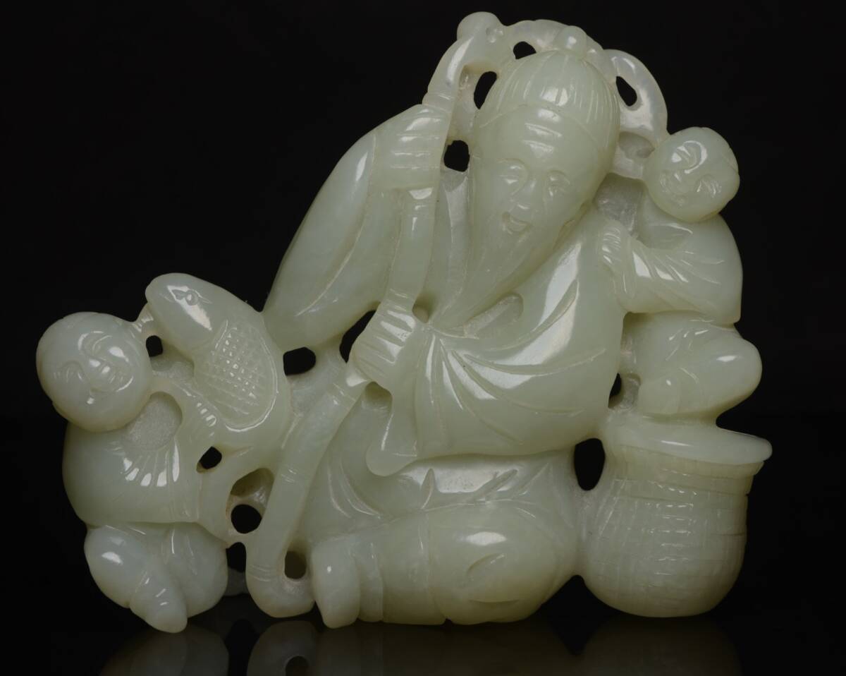 | 【蔵友館蔵品・和田玉製・細密彫・漁翁得利・置物・賞物】・古董品・中国古玩・時代物・希少珍品・中国時代美術 |