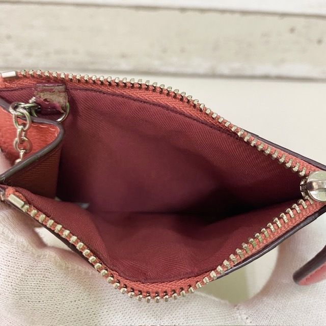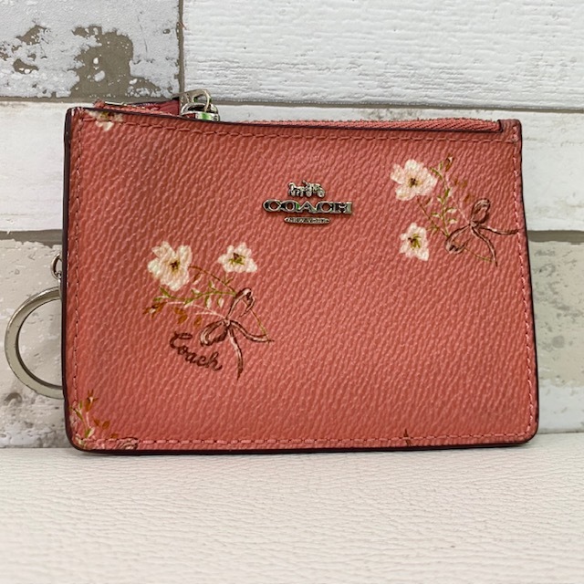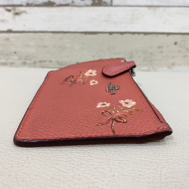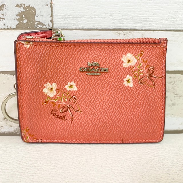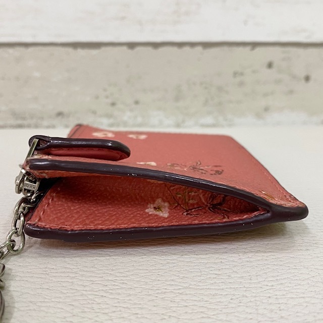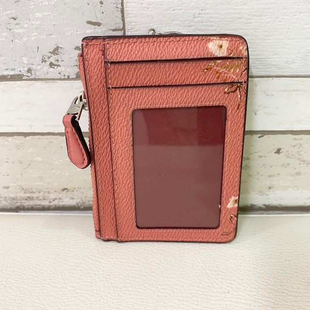 COACH コインケース パスケース ピンク レザー 花柄 キーリング付 コーチ