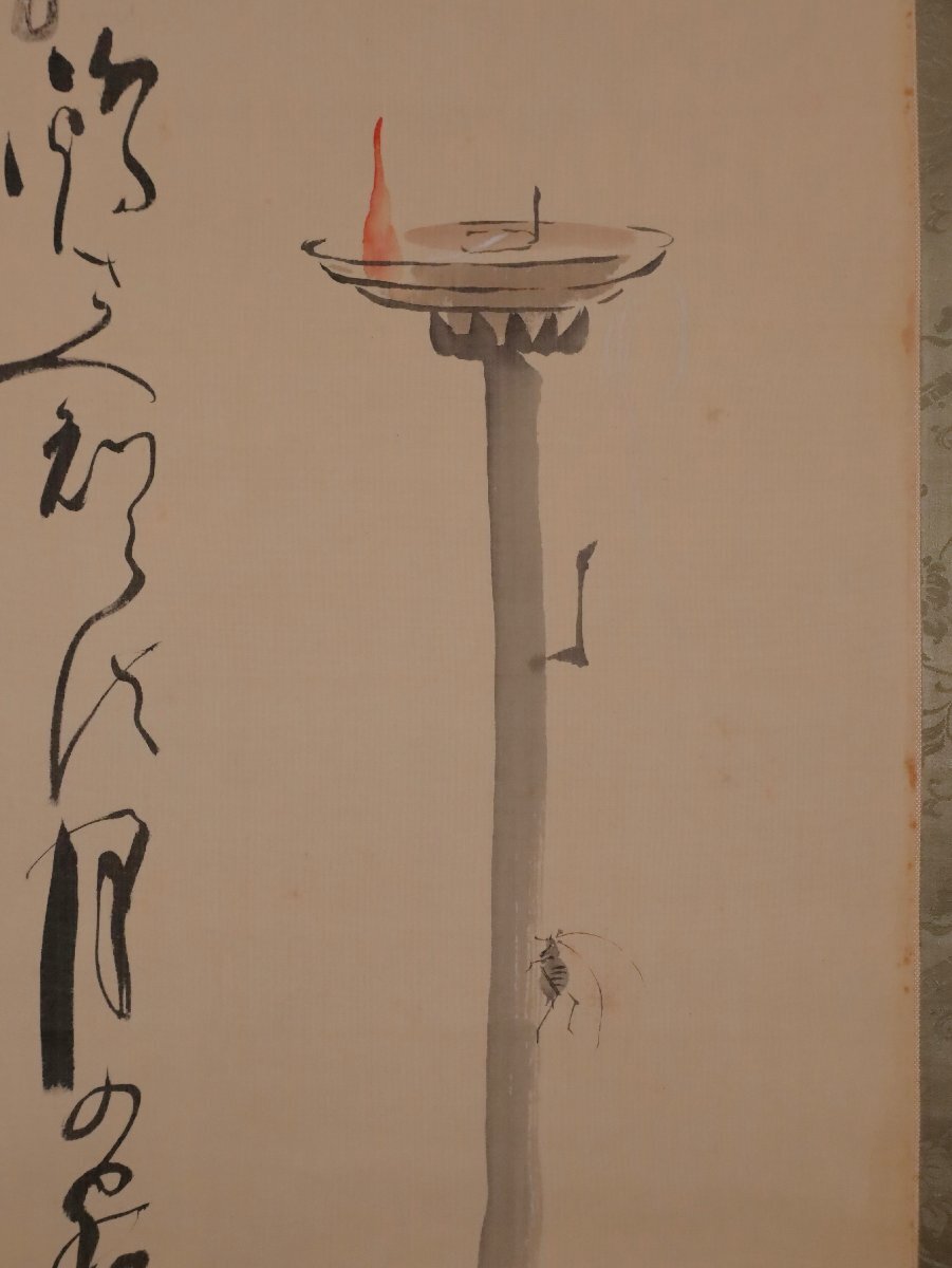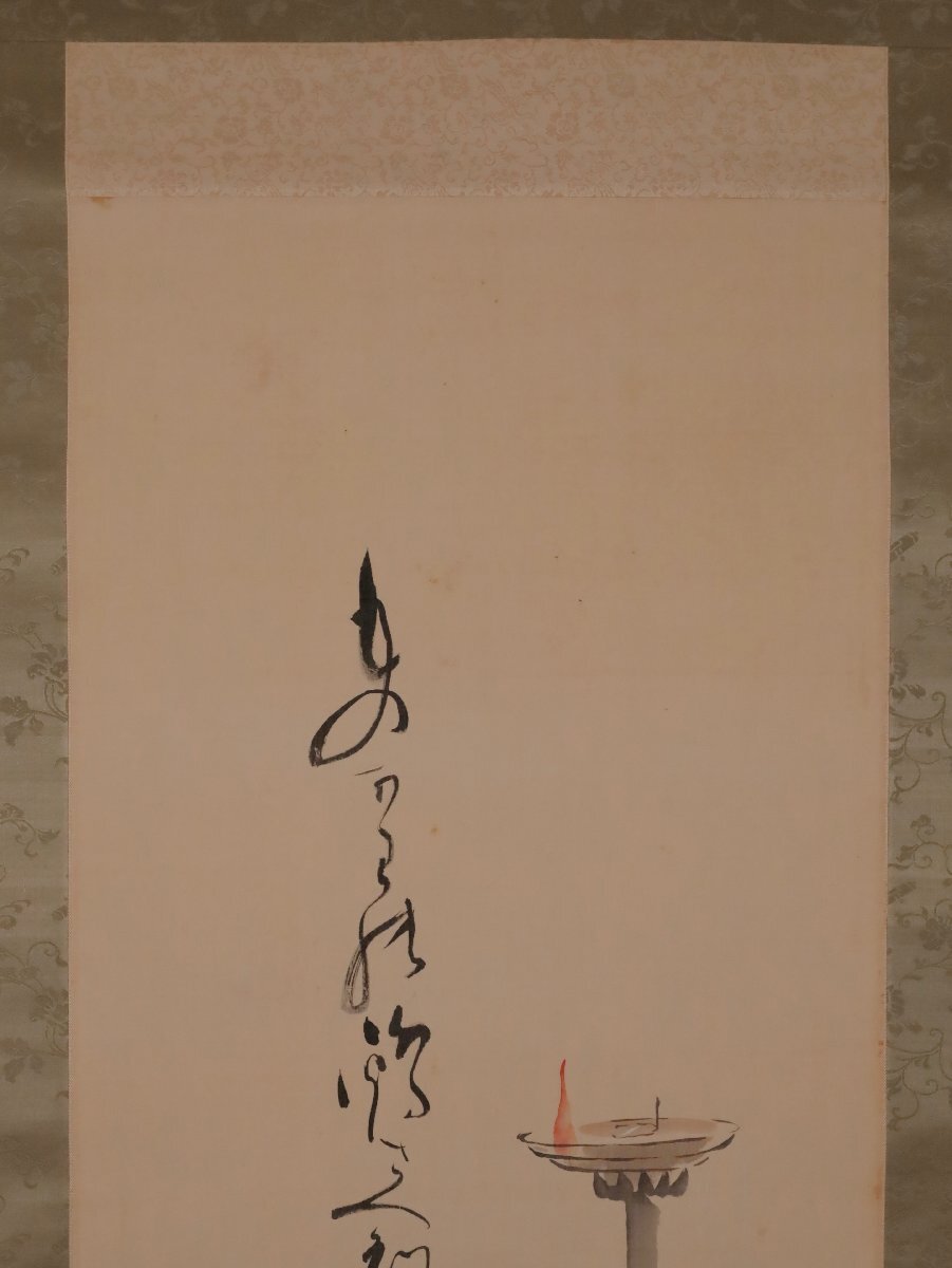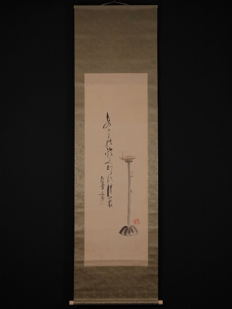 【模写】吉】12531 田辺機一 燭台画賛 八世其角堂 穂積永機師事 俳人 俳句 書 茶掛け 茶道具 掛軸 掛け軸 骨董品