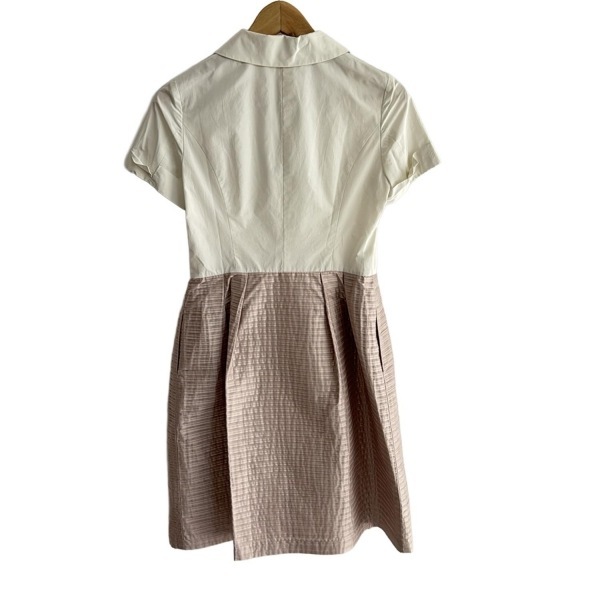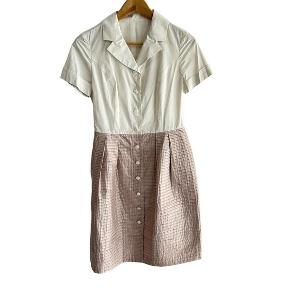 ハロッズ HARRODS サイズ2 M - 白×ピンクベージュ レディース レギュラーカラー/半袖/ロング 美品 ワンピース