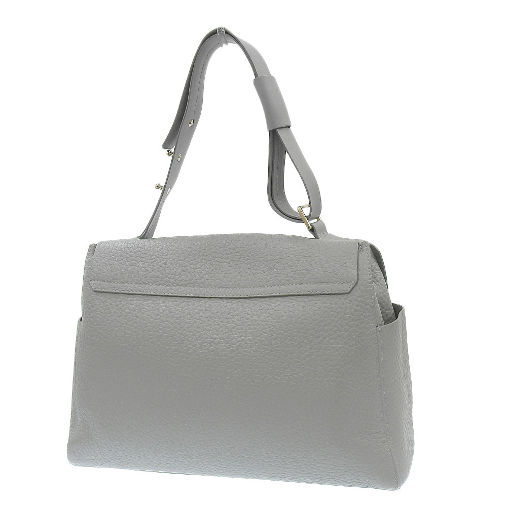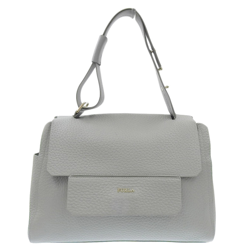 | 超美品 フルラ 現行ロゴ グレイン レザー 2way ワン ショルダー ハンド バッグ グレー ゴールド金具 レディース オフィス 旅 数回使用程 |