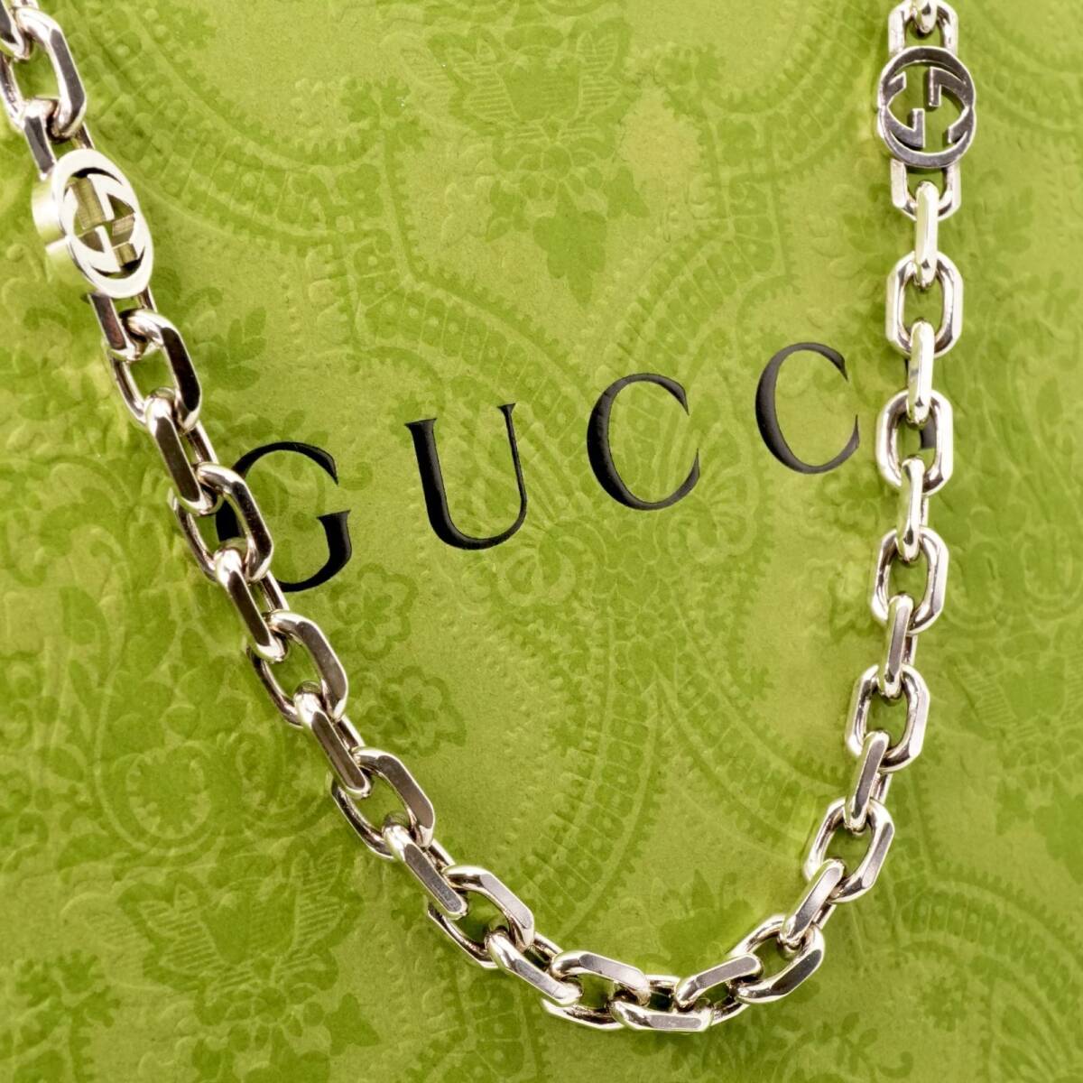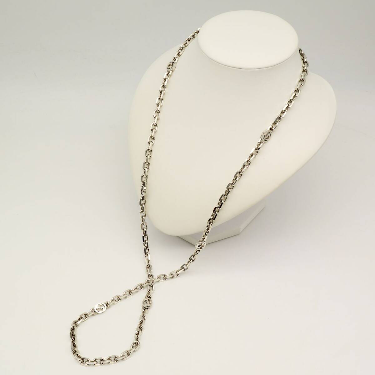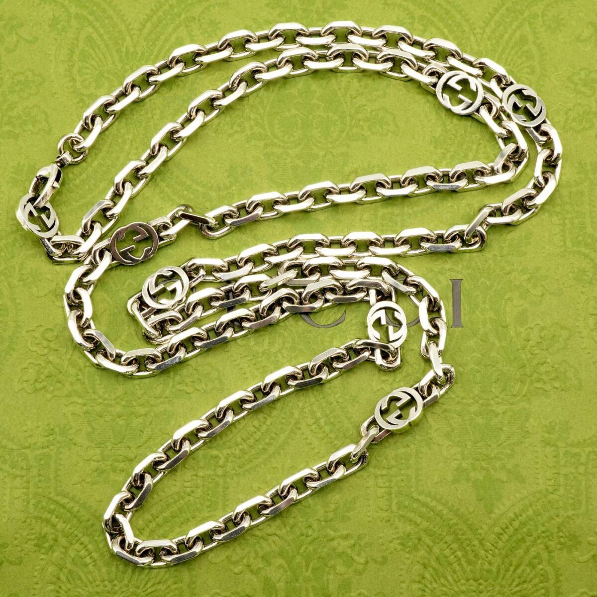 極美品90㎝ グッチ インターロッキング ロングチェーンネックレス25-599M