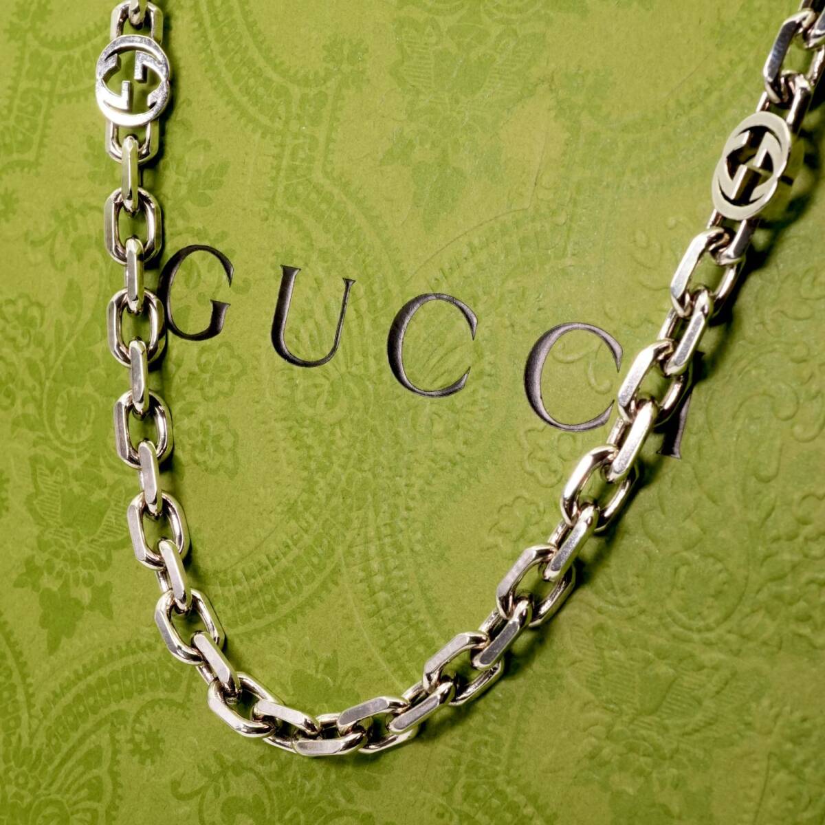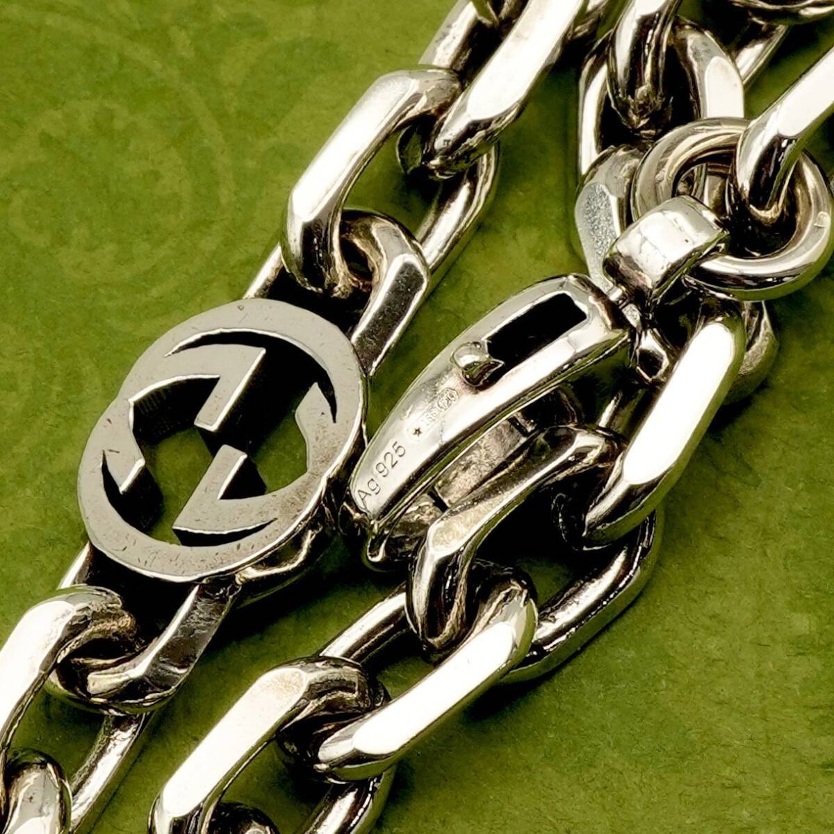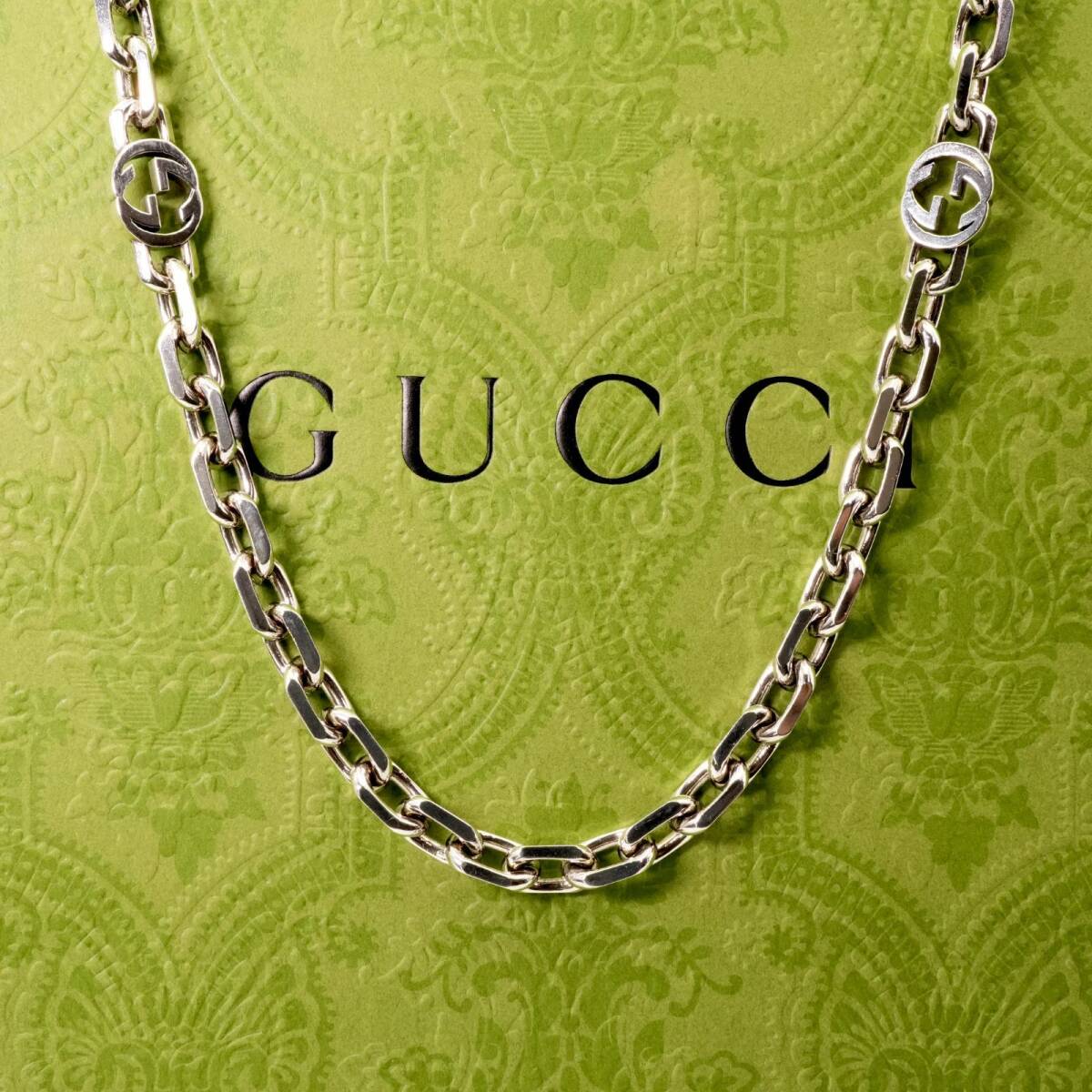 極美品90㎝ グッチ インターロッキング ロングチェーンネックレス25-599M