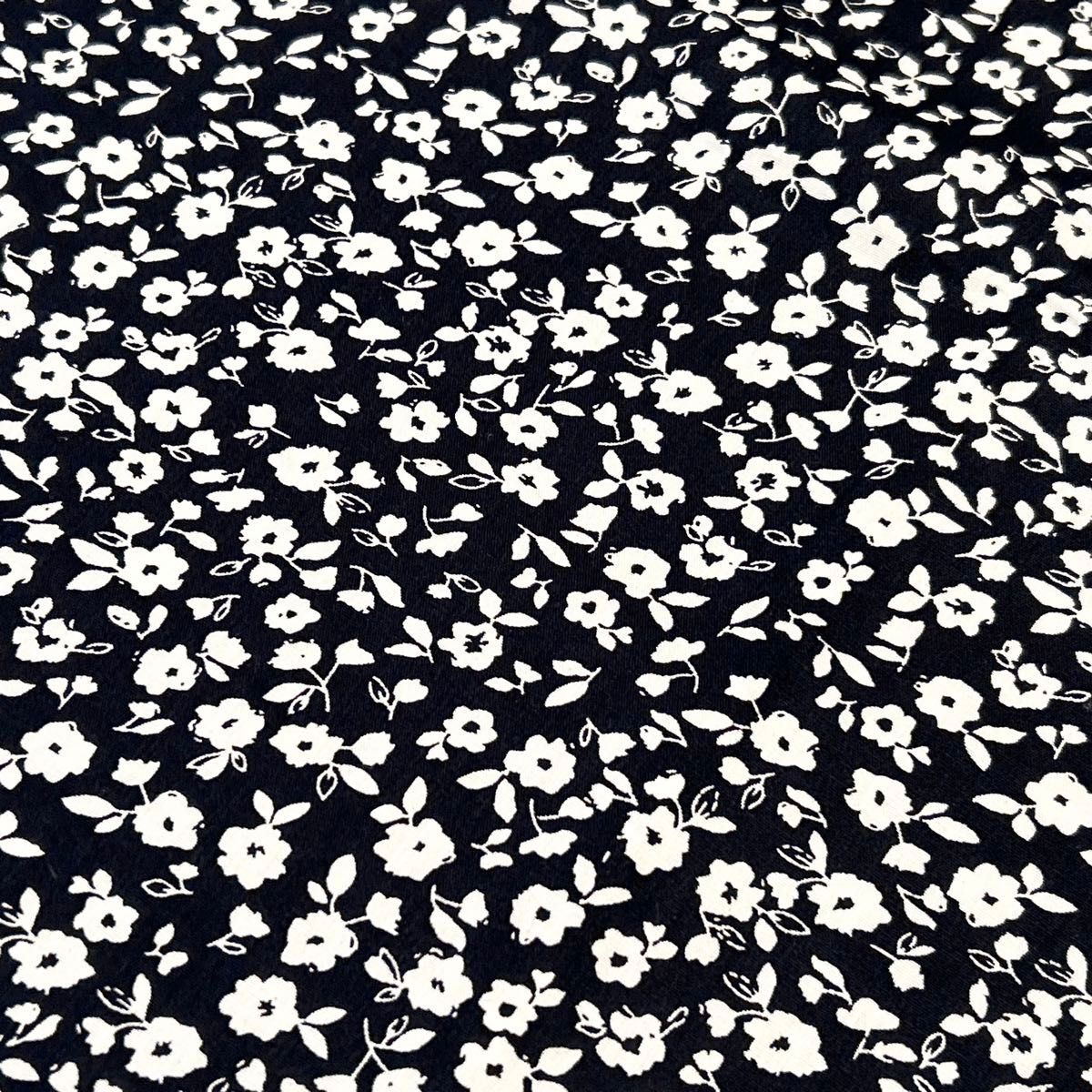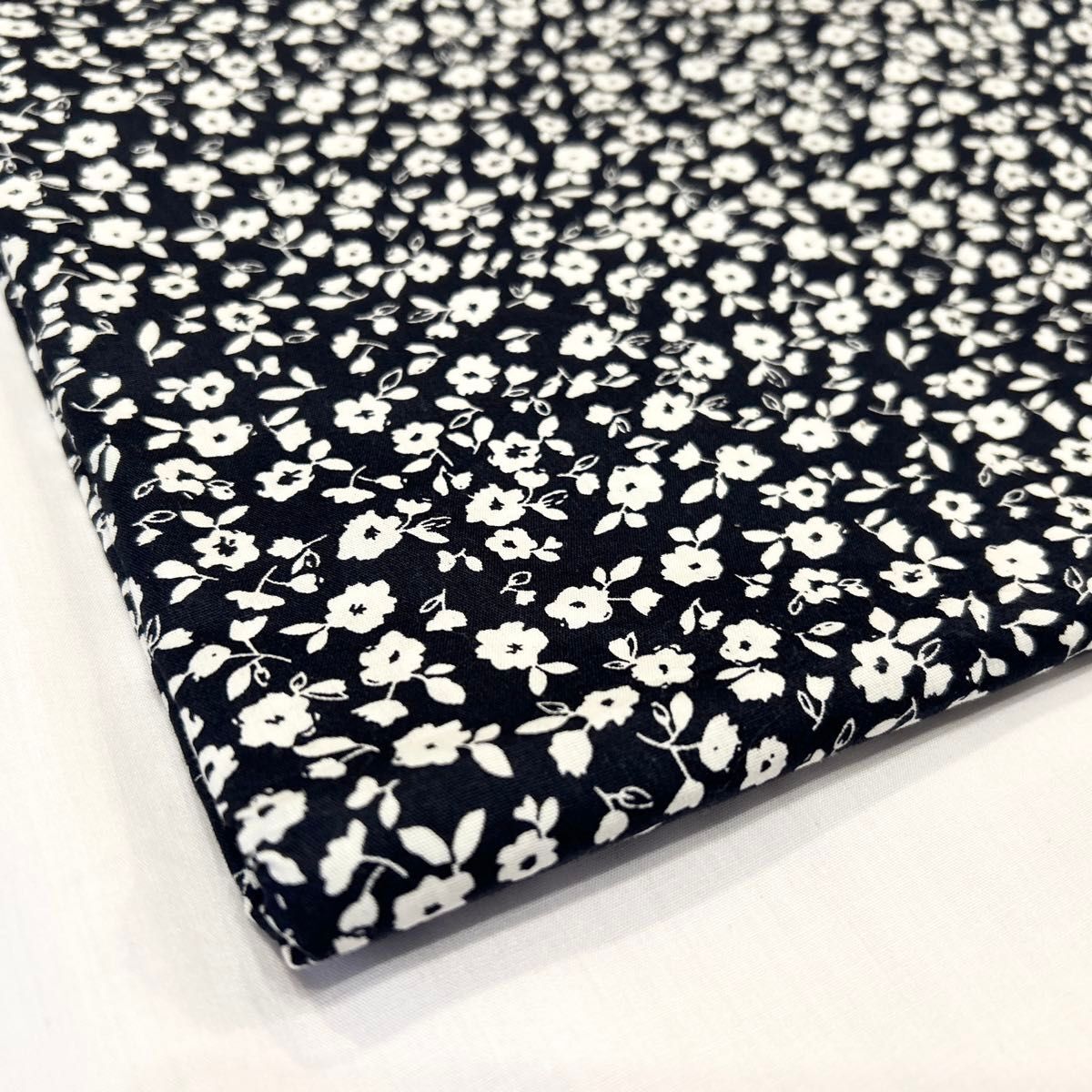 RF3 プリント フラワー コットン100%生地 レトロお花③黒