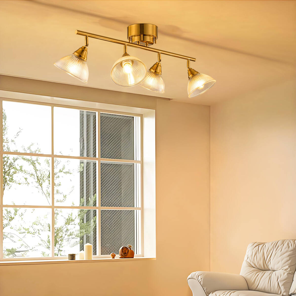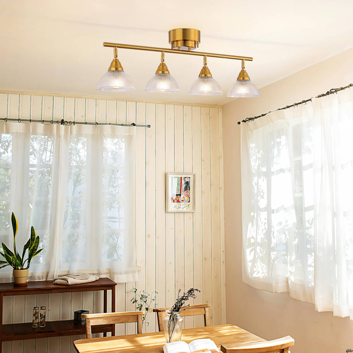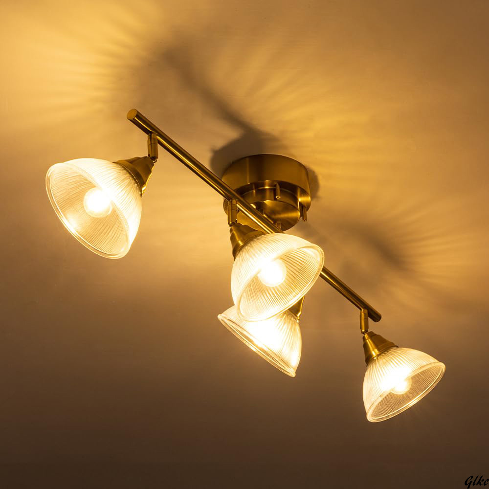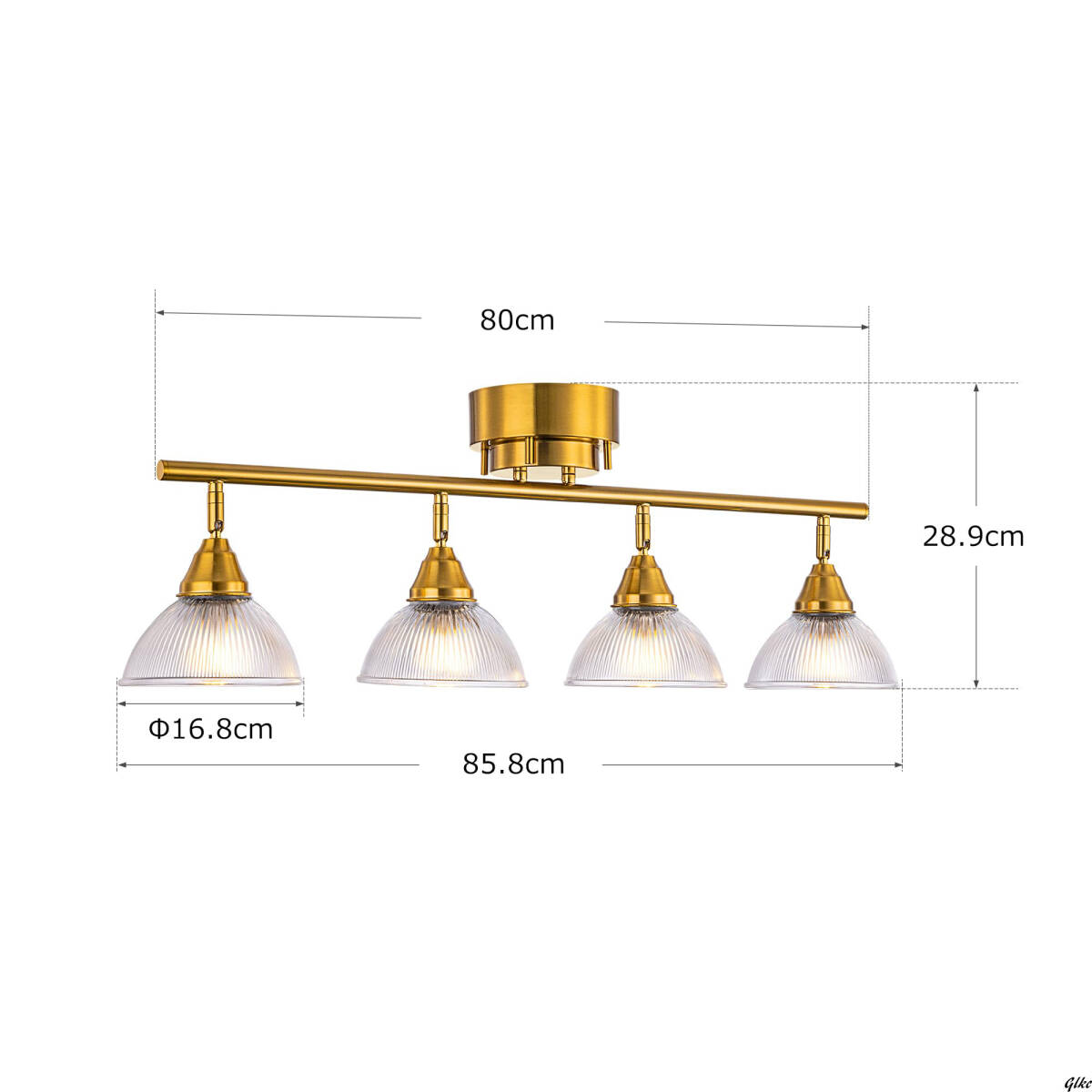 4灯タイプでしっかりと明るさを確保しながらも、ガラスと真鍮を組み合わせた高級感のある佇まいが魅力です。