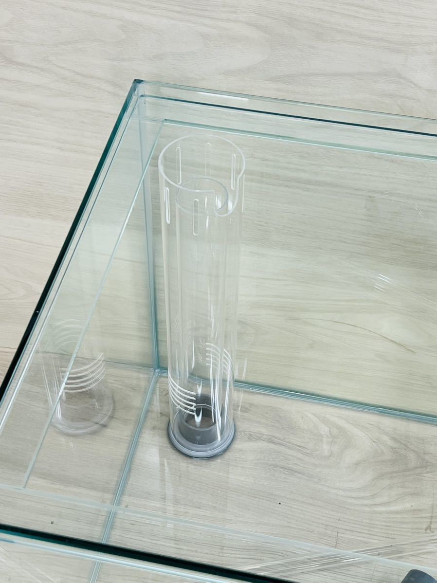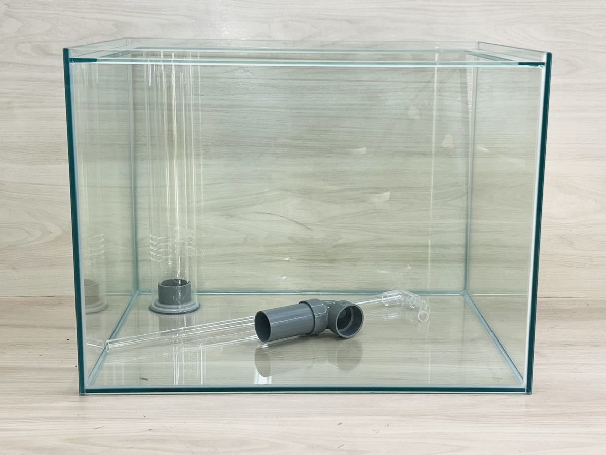 600×450×450オールガラスオーバーフロー水槽 フランジ加工付きです。