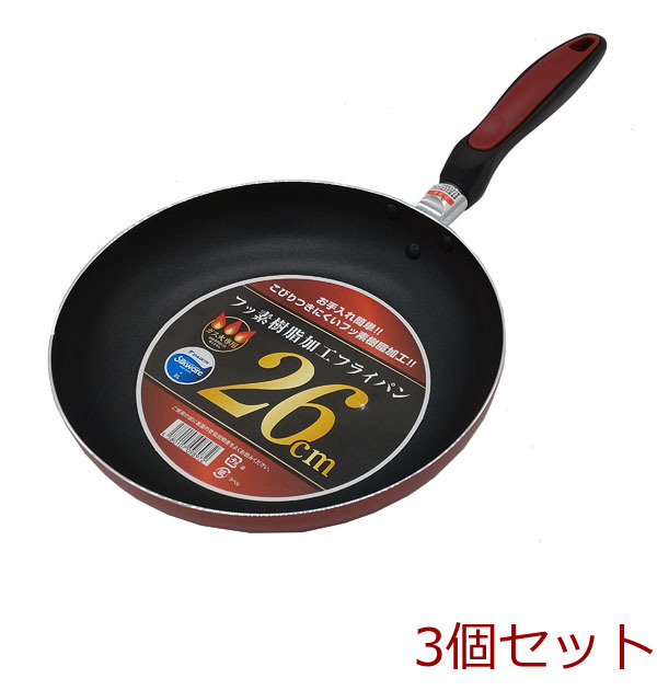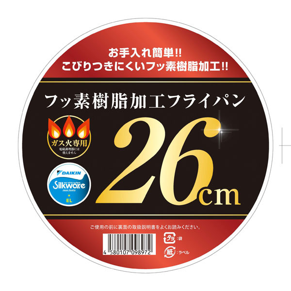 ふっ素樹脂加工フライパン26cm ※ガス火専用 生産地 中国 サイズ 製品サイズ(約):全長450×幅265×高さ105mm(底の厚さ:1.8mm 製品重量(約):460g 素材 表面加工(内面:ふっ素樹脂塗膜加工 外面:焼付け塗装) 本体:アルミニウム合金 取っ手:フェノール樹脂 |