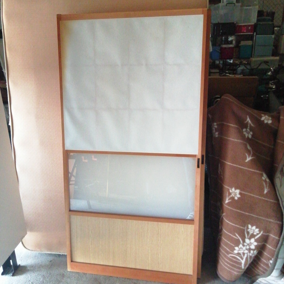 佐賀発 雪見障子戸 建具 引き戸 和紙 古民家 古家具 レトロ アンティーク 木枠 (約930×1775mm) リノベーション 和室 茶室