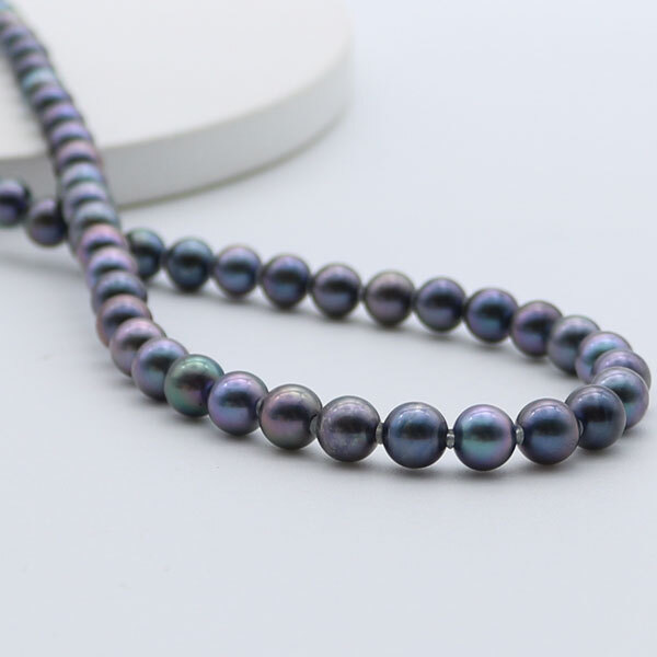 アコヤ真珠6.5mm-7mm黒真珠パールネックレスです。 |