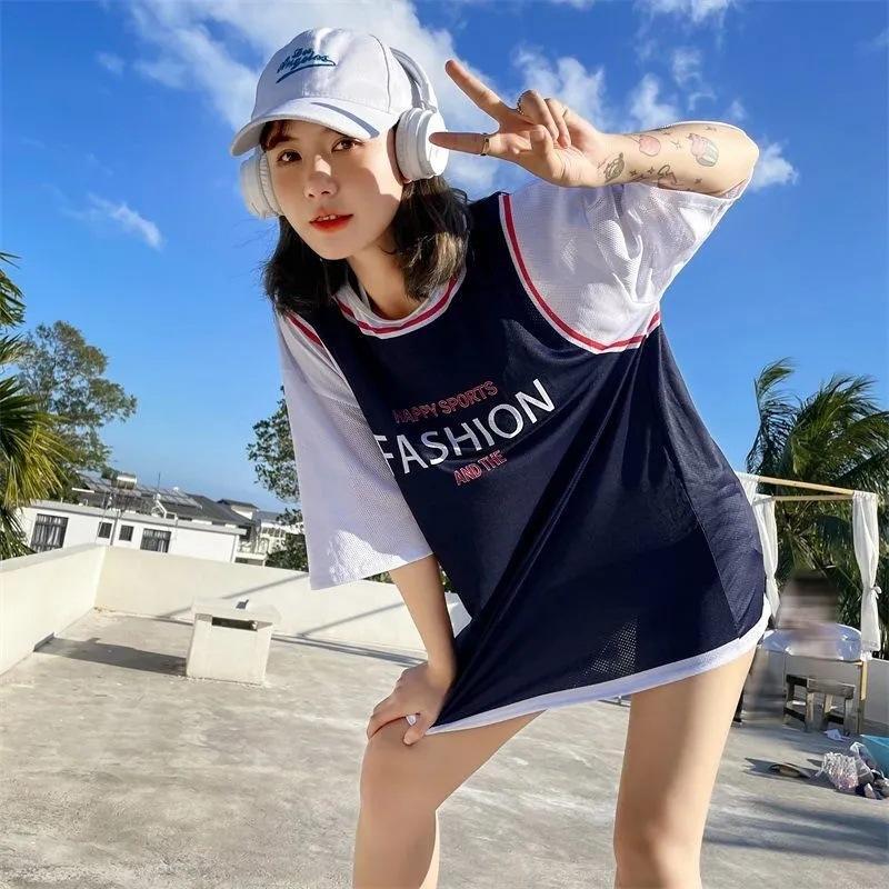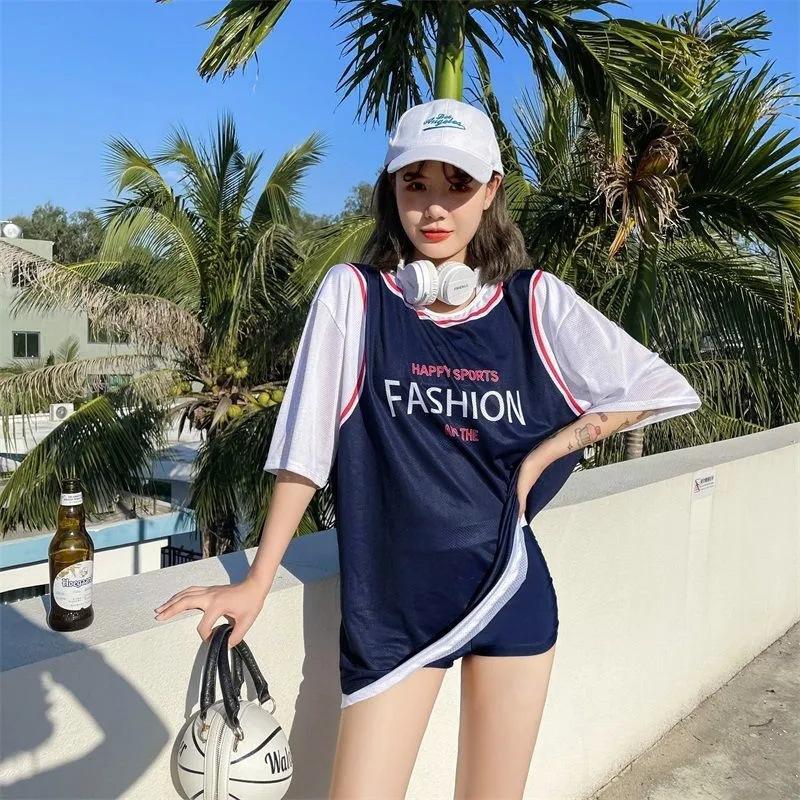 夏 小胸 海水浴 潜水 韓国風 可愛い バンドゥ パレオ 日焼け防止 水着 レディース 3点セット ネイビー XL