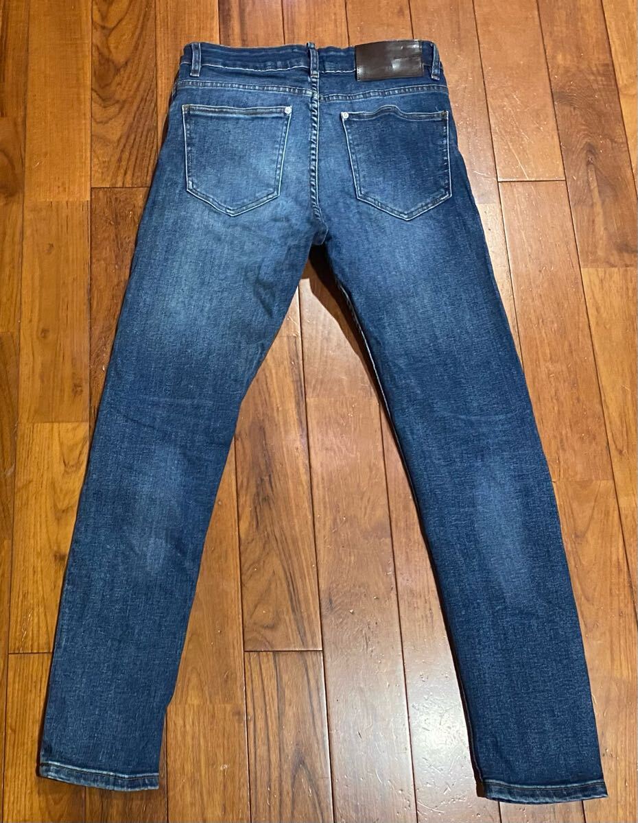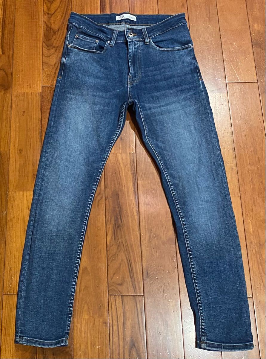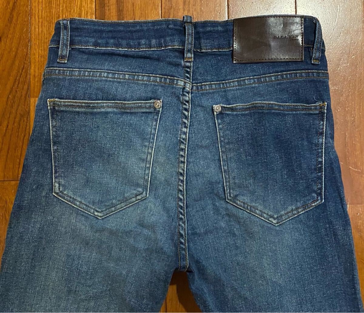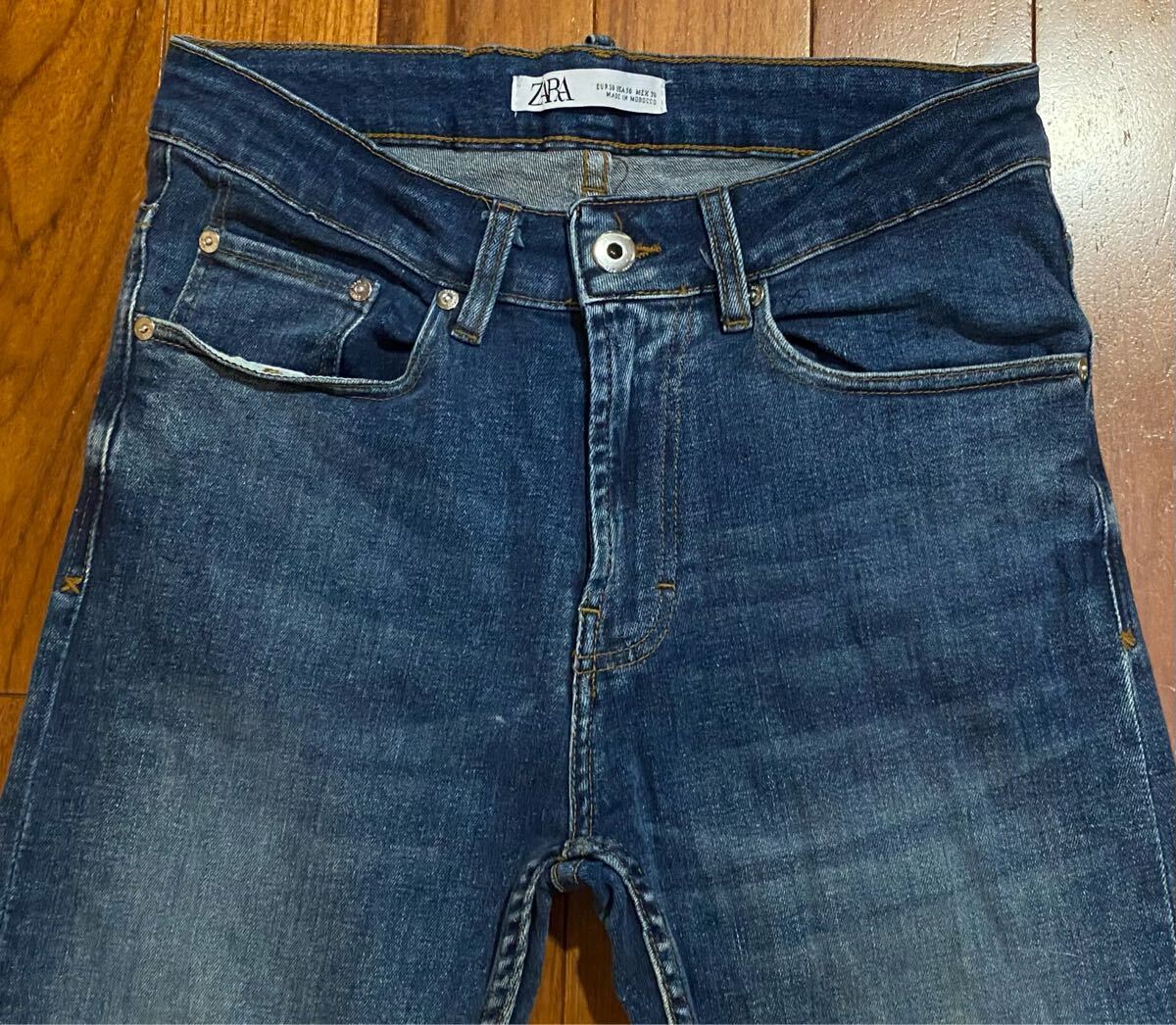 ザラ・マンのストレッチスキニーデニム(ジーンズ)です。色はインディゴブルーです。USEDですが状態は良いです(10段階中8程度)。生地はストレッチ入りでコットン98%、ポリウレタン2%です。ジッパーフライです。正規品です((株)ザラジャパン、モロッコ製)。サイズはW30でウエストは重ねずに平置きで約75cm、ヒップ約88cm、股上約27cm、股下約72cm、股下15cmのふともも部分約44cm、裾まわり約28cm、重量約510gです。発送はゆうパケットポストになります。