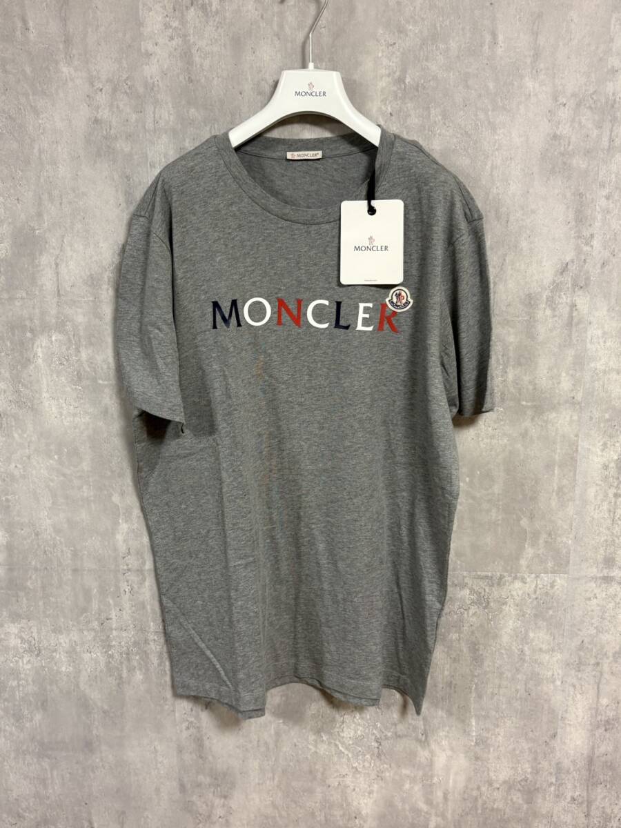 ☆新品未使用タグ付き☆ MONCLER tricolor lettering logo MAGLIA SS T-SHIRT Tシャツ グレー色 XLサイズ