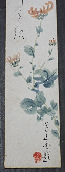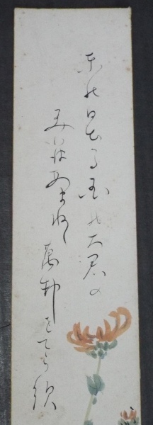 4871☆☆不明・肉筆短冊・菊画賛・和歌・歌人・画家・不明・☆