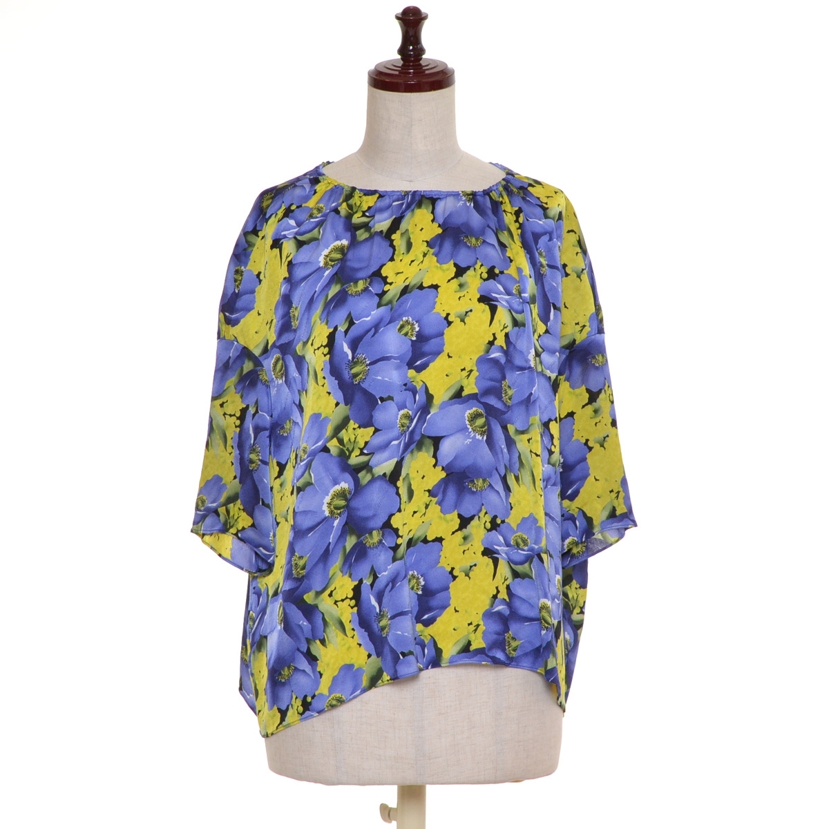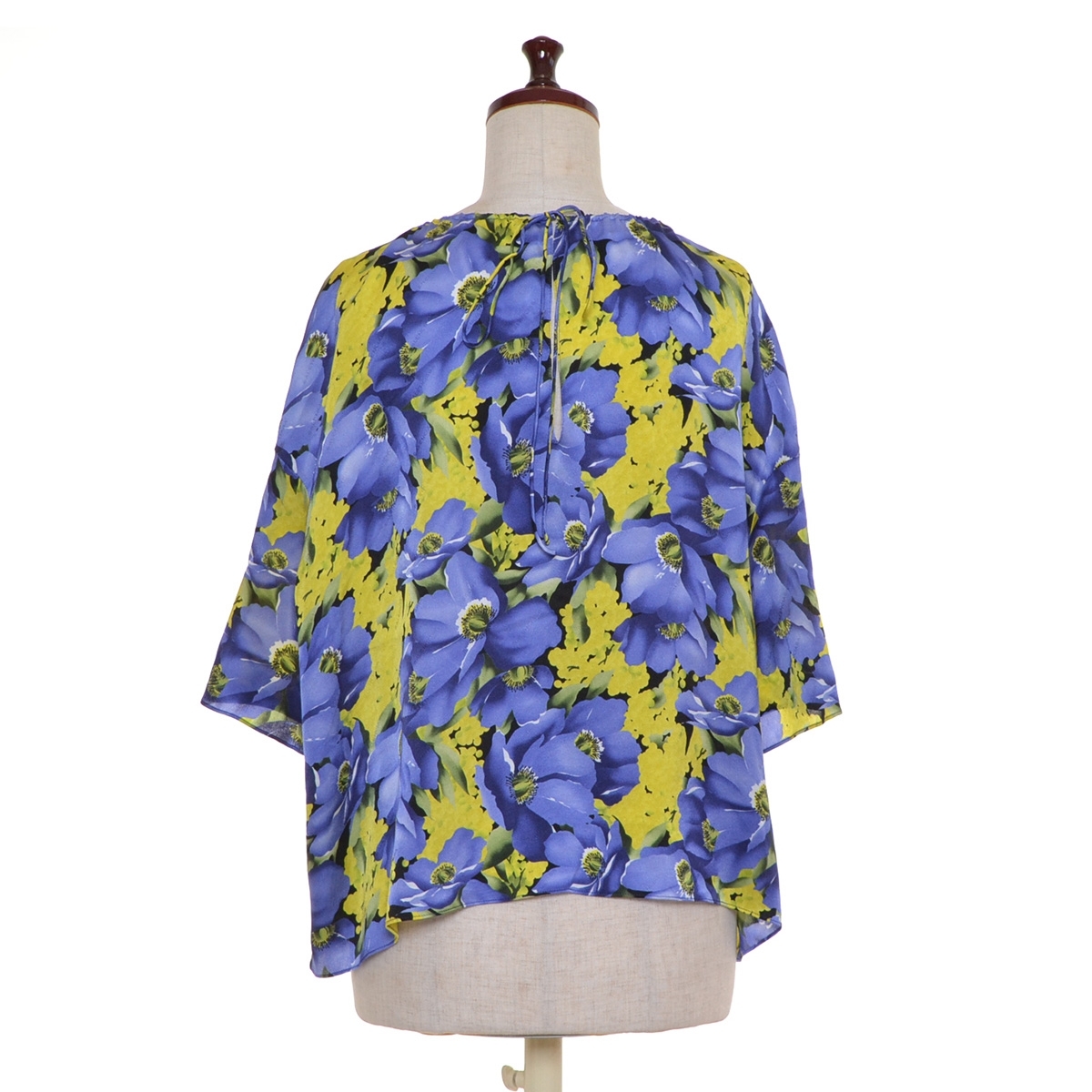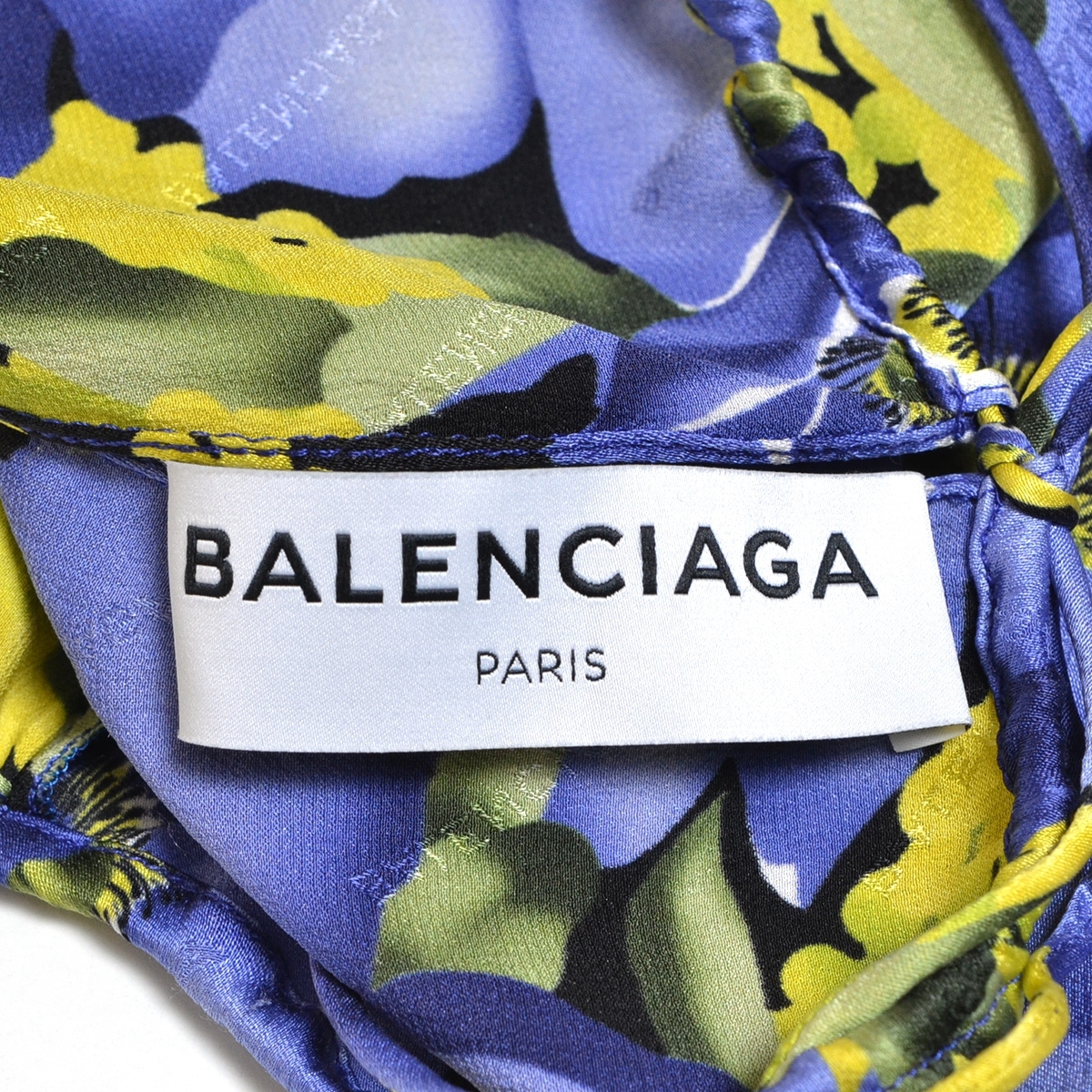 ■472734 BALENCIAGA ●ブラウス カットソー フラワープリントバックリボンプルオーバー サイズ34 2017SS レディース ブルー 花柄