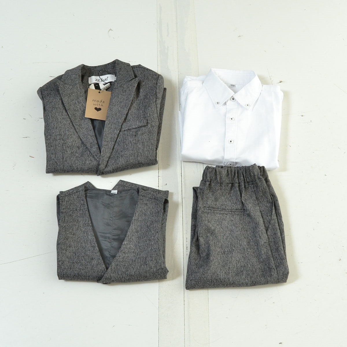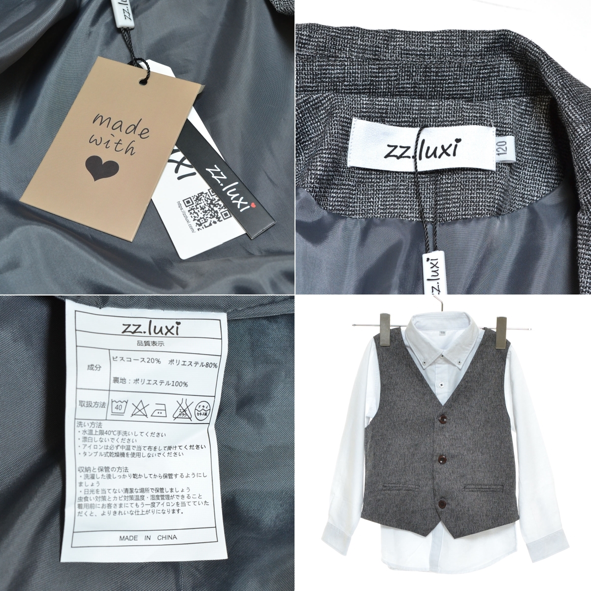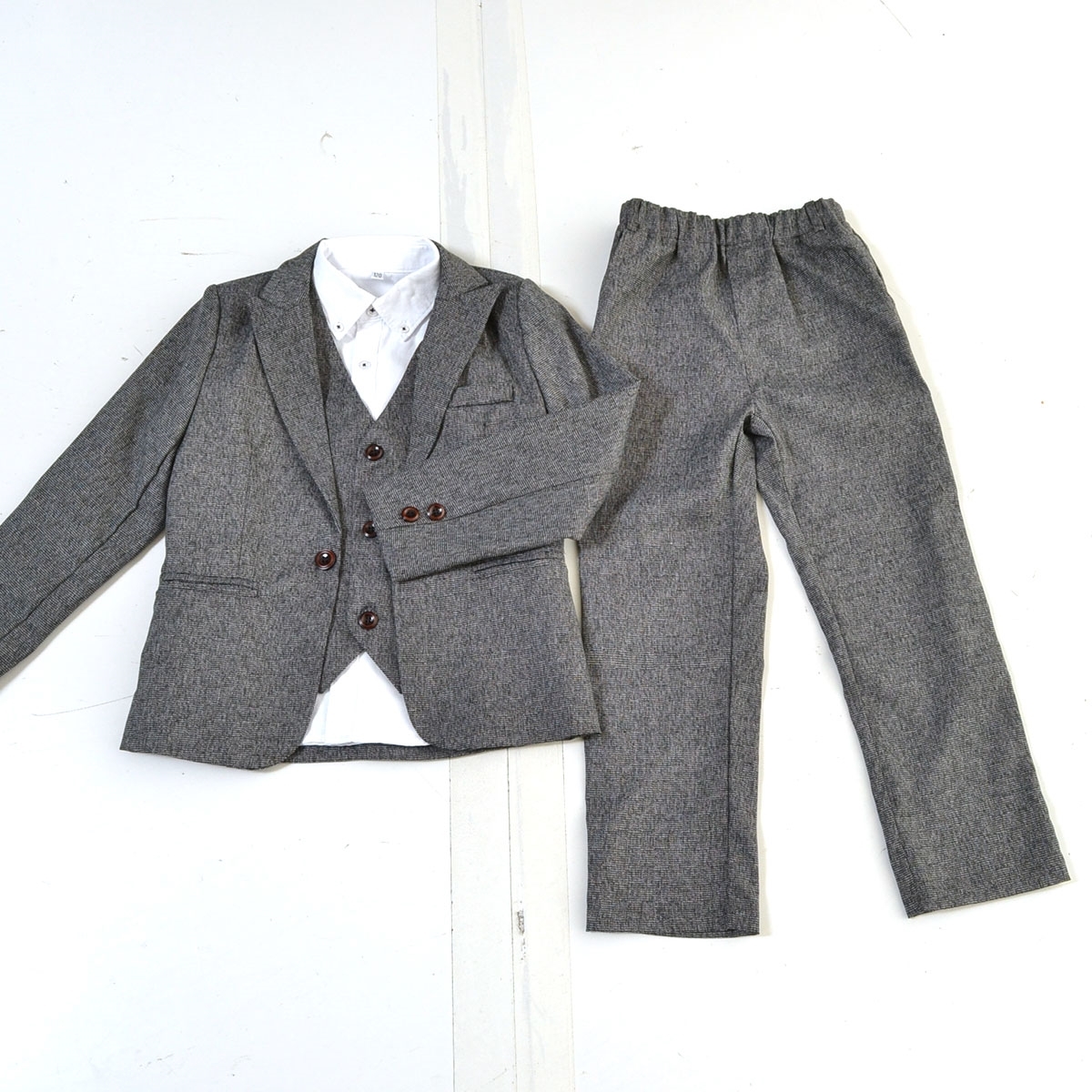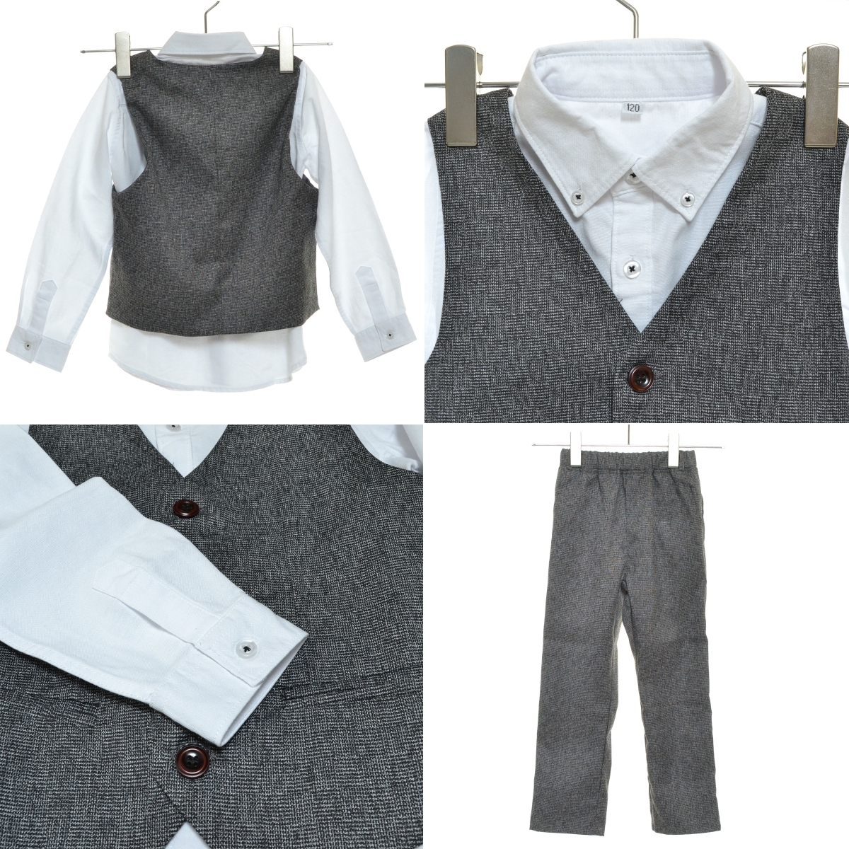 〇521923 zz.luxi ○上下セットアップ フォーマルスーツ 卒園式 入学式 4点セット 120cm キッズ 子ども 男の子 グレー
