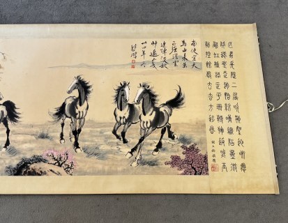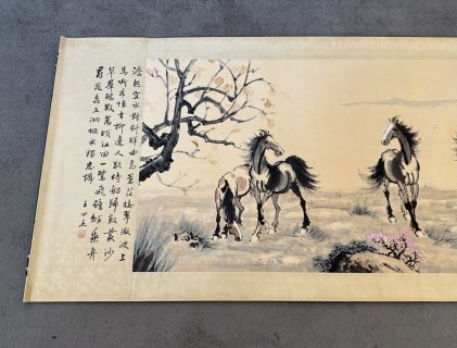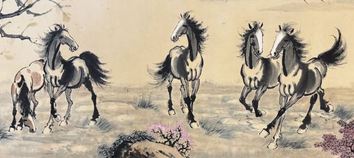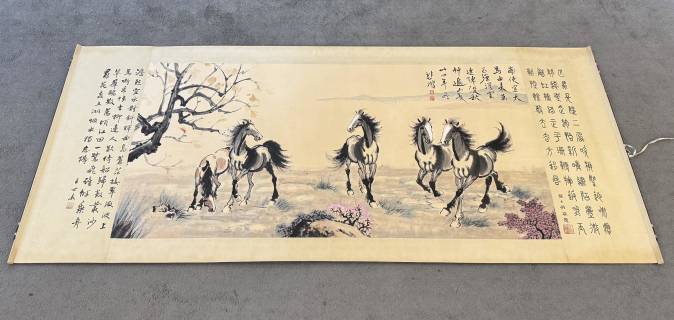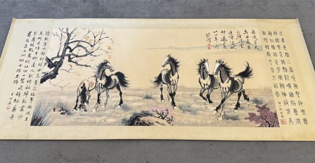 『三希堂』 中国画 古美術 [徐悲鴻五駿図] 掛け軸 真筆逸品 肉筆保証 中心尺寸134.5X66cm ABC608