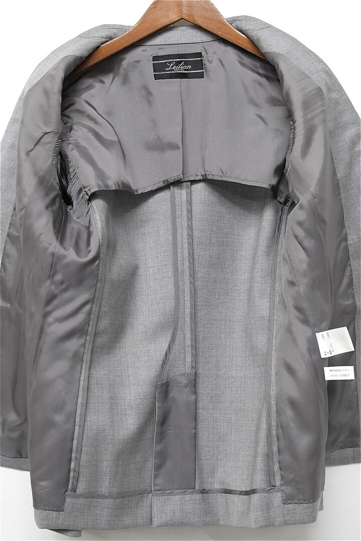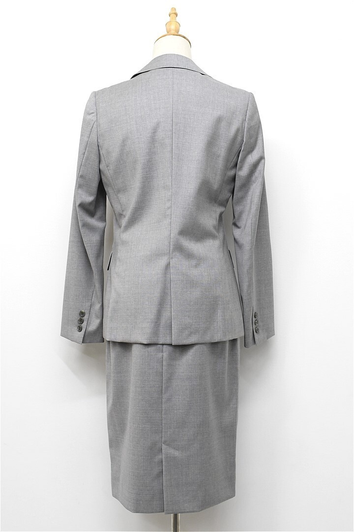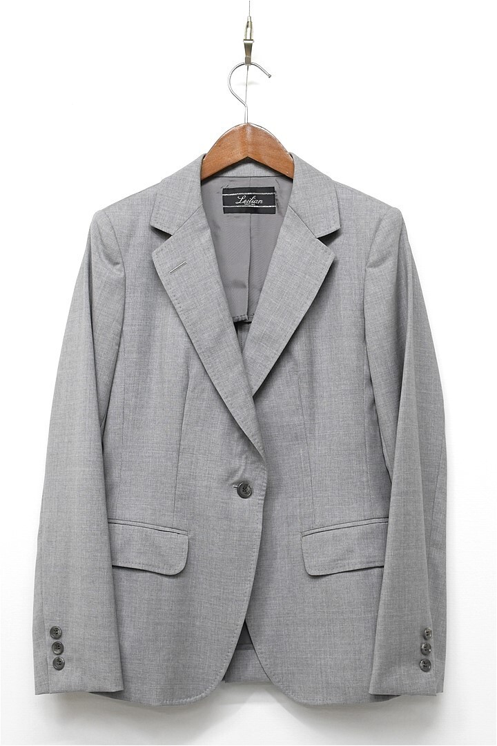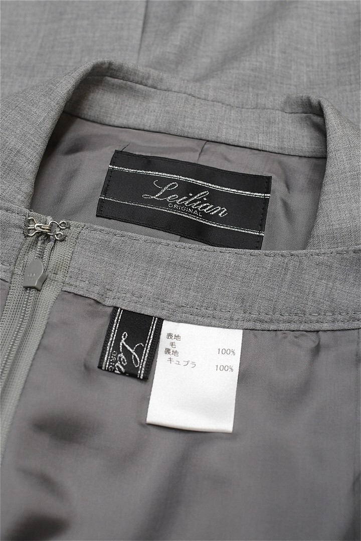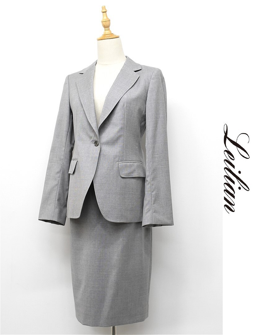 A423/Leilian セットアップ スーツ テーラードジャケット ひざ丈スカート 背抜き 1つボタン センターベント ウール 9 M ライトグレー 春夏