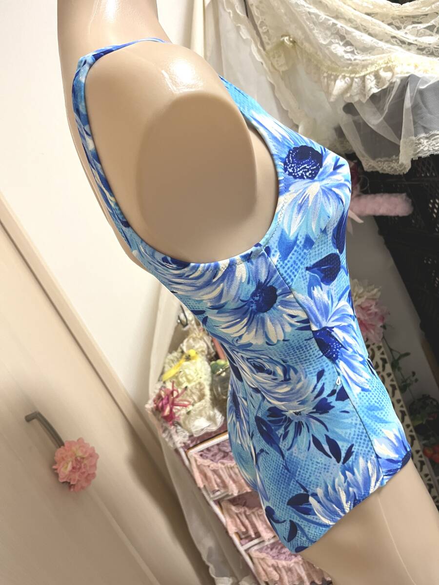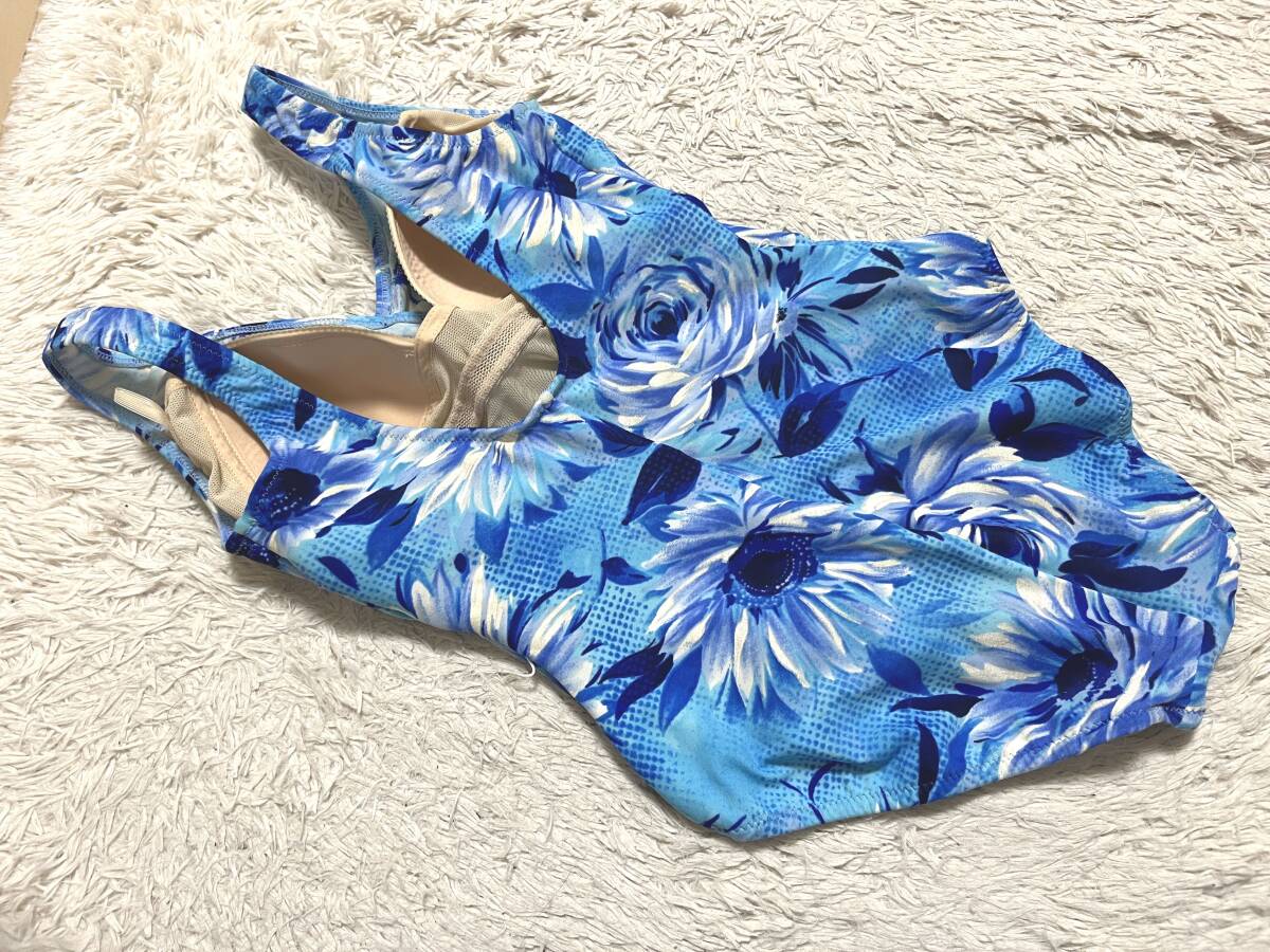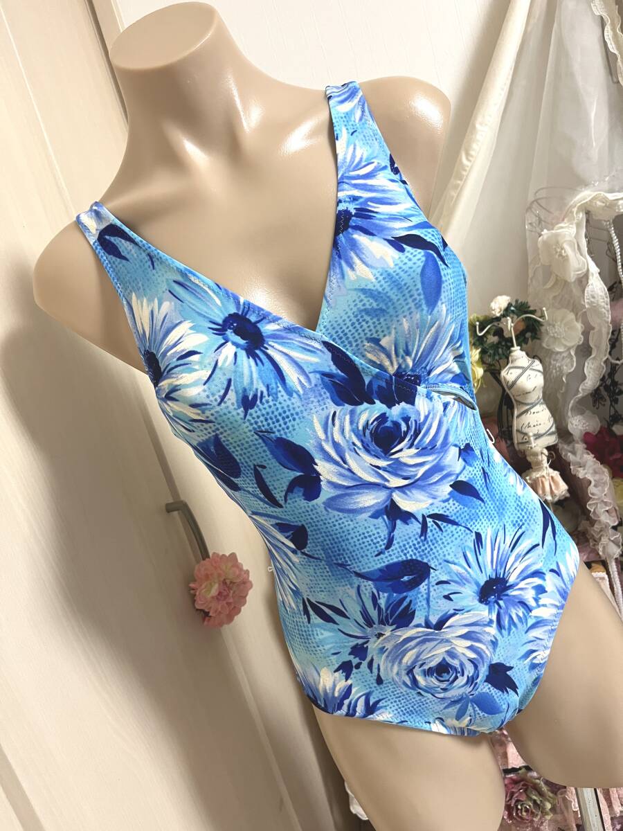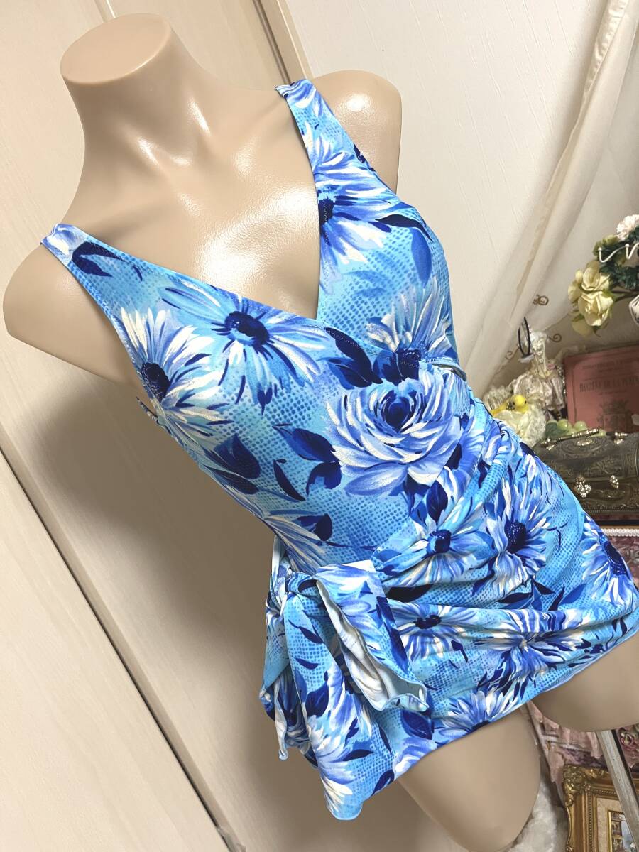 ●レディース水着9M●ニッキー◆カシュクールデザイン*メッシュ総裏地*ワンピース水着*パレオスカート水着:ライトブルー
