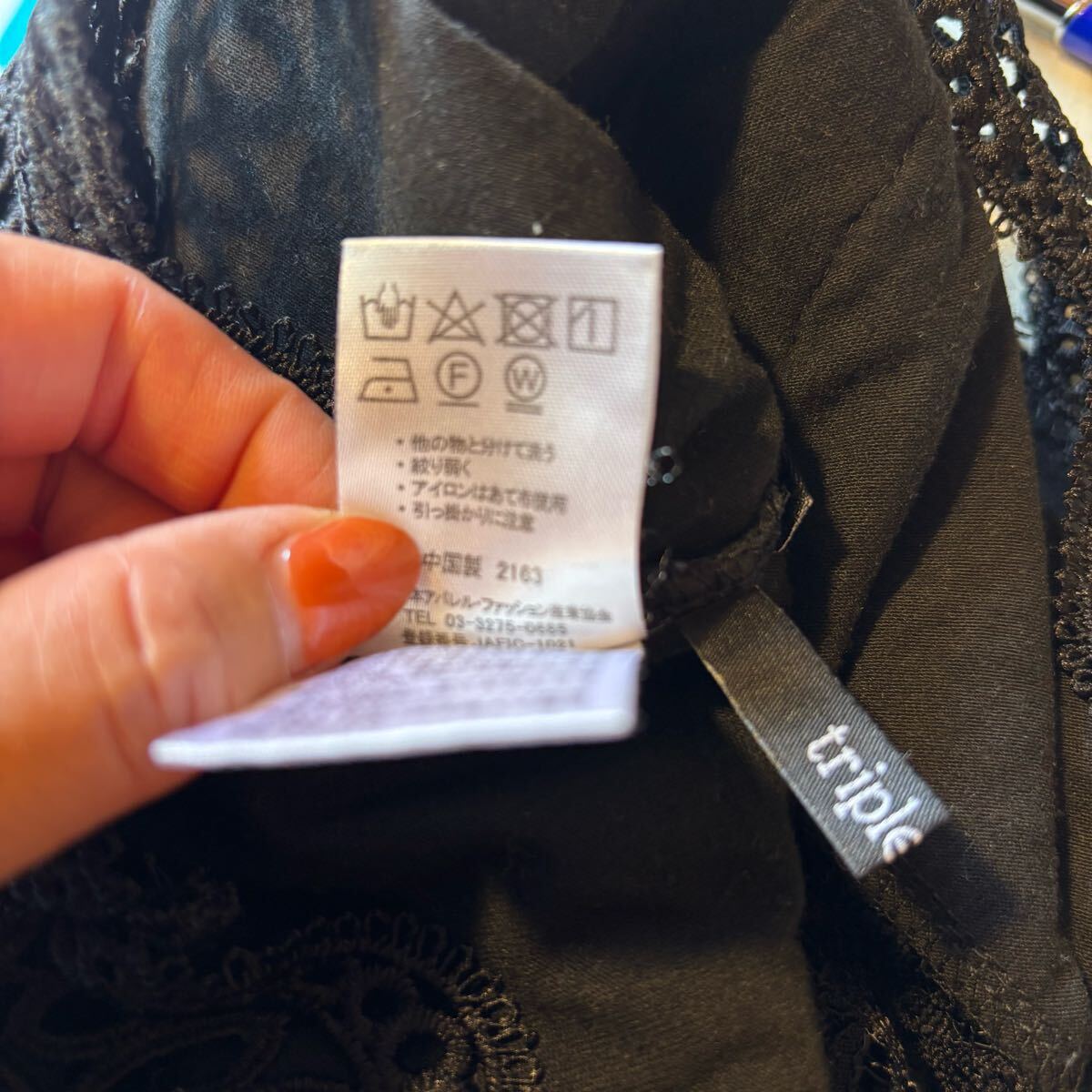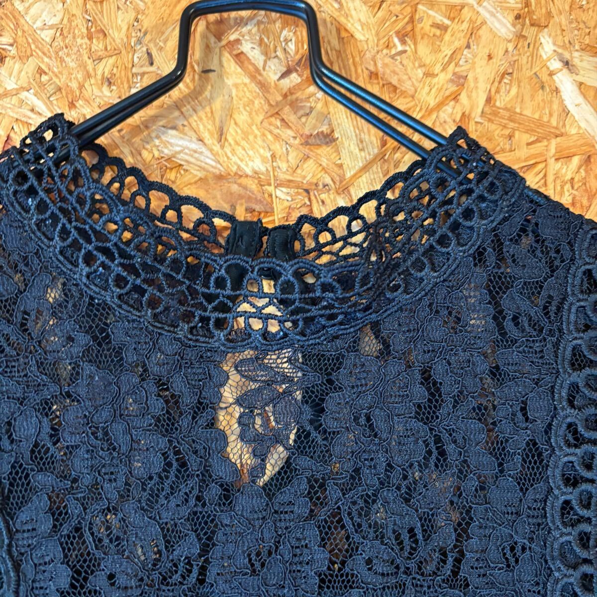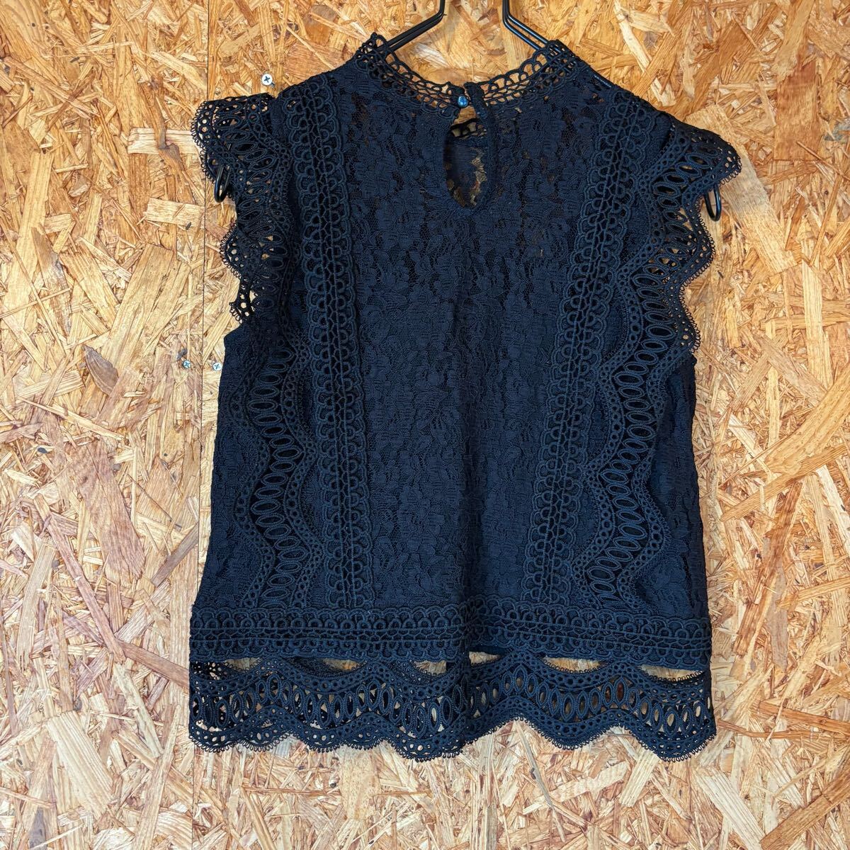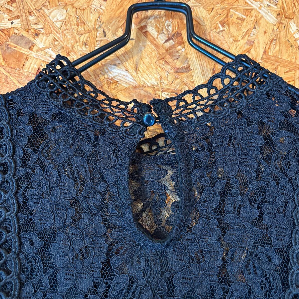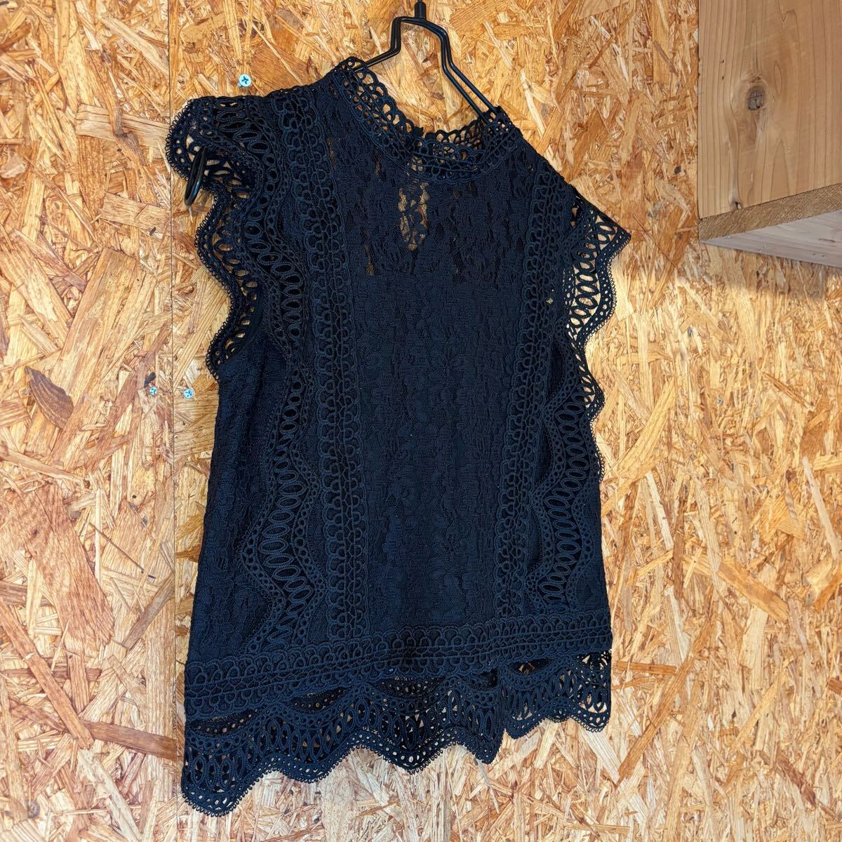 美品 triple rund レース ノースリーブ ブラック 袖なしカットソー 透け感あり レーストップス レディース 4511