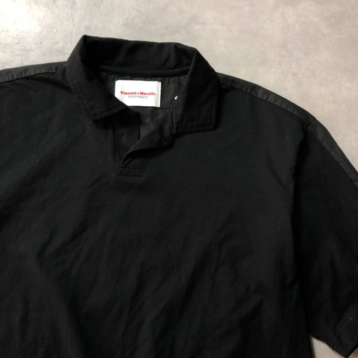 商品名 :GQ2683◇Vincent et Mireille : スキッパーカラー ポロシャツ◇40◇黒 前後切替素材 ヴァンソンミレイユ オーバーサイズ