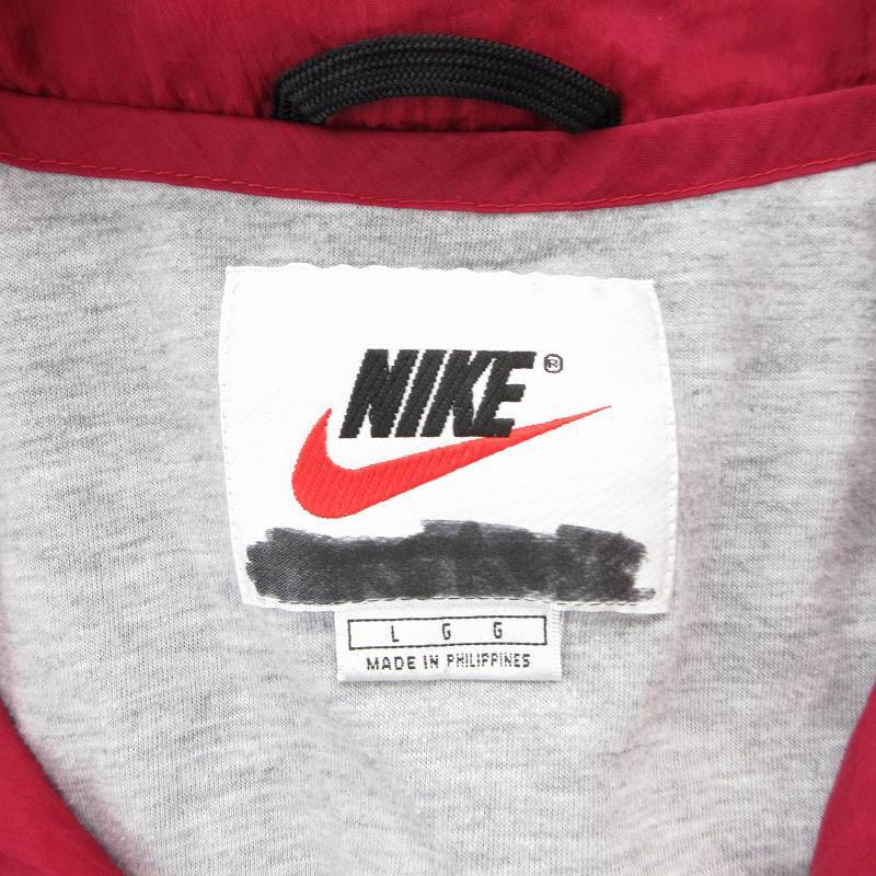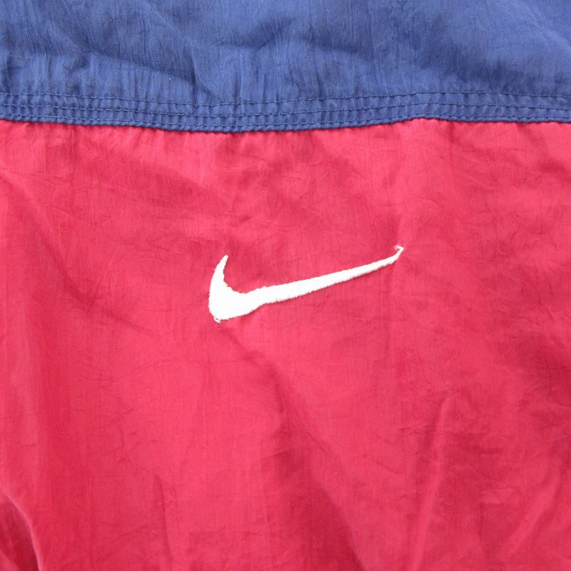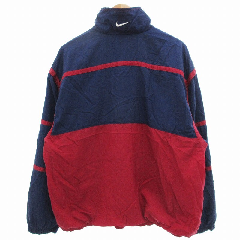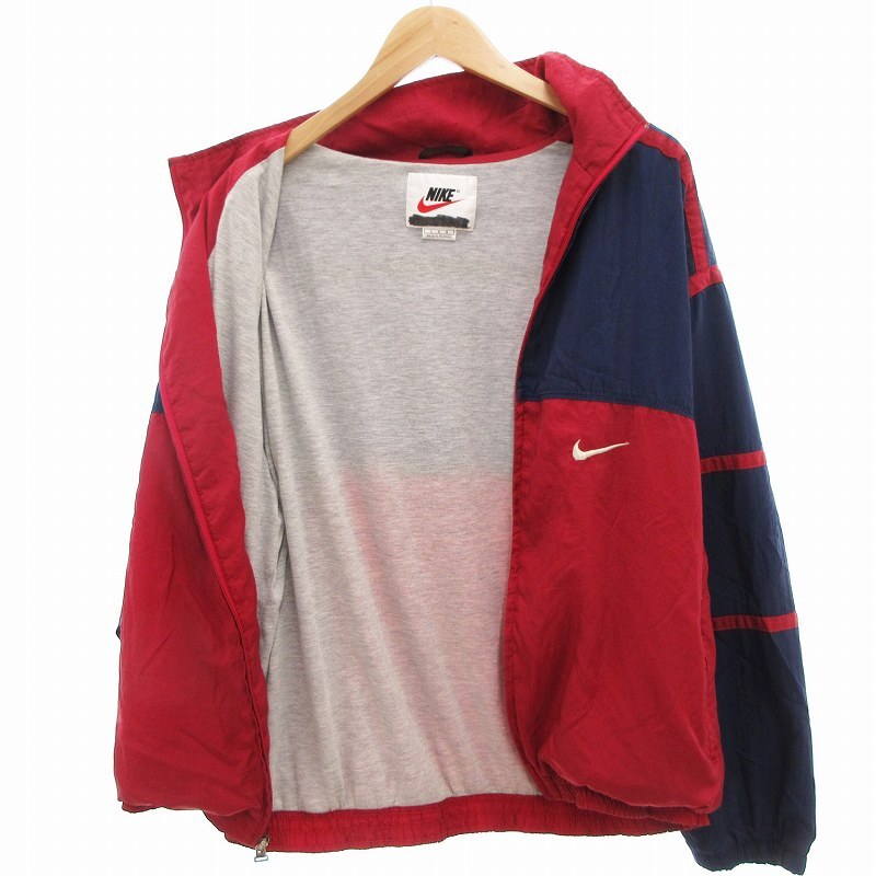 ナイキ NIKE 白タグ 90s ヴィンテージ ナイロンジャケット 刺繍 L 紺 ネイビー 赤 レッド /OU メンズ
