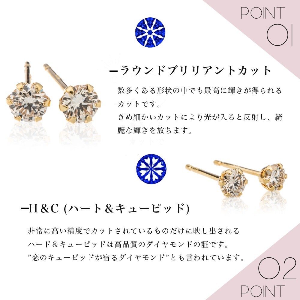 コメント 【Product Introduction】 | ハート&キューピッドのダイヤモンドが セッティングされているので、 動くたびに ギラッギラッ と輝き 耳元を華やかにしてくれるお品です。 女性なら1つは持っておきたい 一粒ダイヤモンドピアスを 是非、この機会に!! 大切な方へのプレゼントにもオススメです。 ※画像では分かりづらいですが、ハート&キューピッドのダイヤモンドがセッティングされているので、とても輝きが強いです。 |