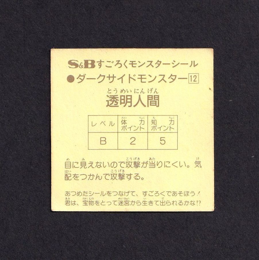 当時物●魔空の迷宮●S&Bすごろくモンスターシール●第1弾●透明人間●ダークサイドモンスター●12●レトロ マイナーシール②