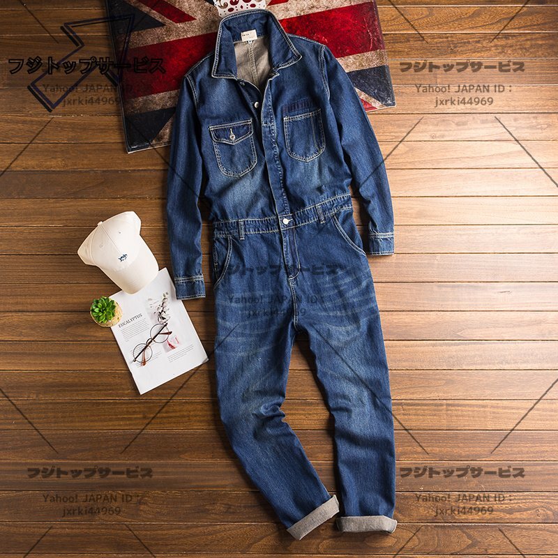 秋新品上品質メンズサロペット オーバーオール デニム つなぎ オールインワン ペインター ダメージ ワークパンツ カーゴ 個性 作業服S~3XL
