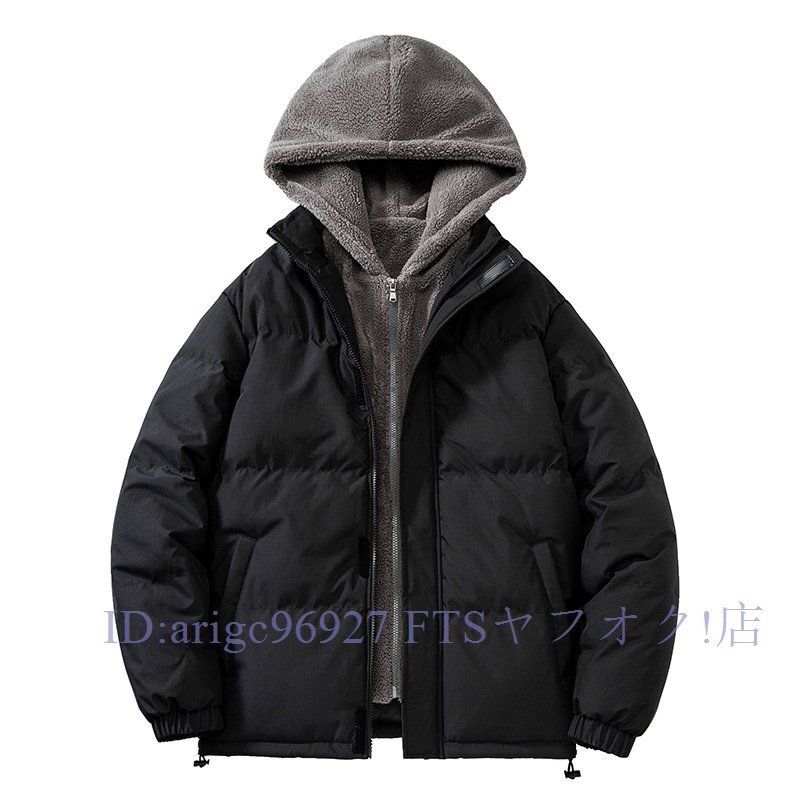 新品★ダウンジャケット メンズ 中綿コート フード付き 重ね着風 ショート丈 アウター 防風防寒 冬 アウトドア 暖かいサイズ選択可
