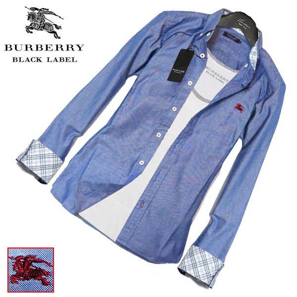 新品!2(M) バーバリーブラックレーベル ★ホース刺繍×ノバチェック★ メンズ オックスフォード BD長袖シャツ■BURBERRY BLACK LABEL