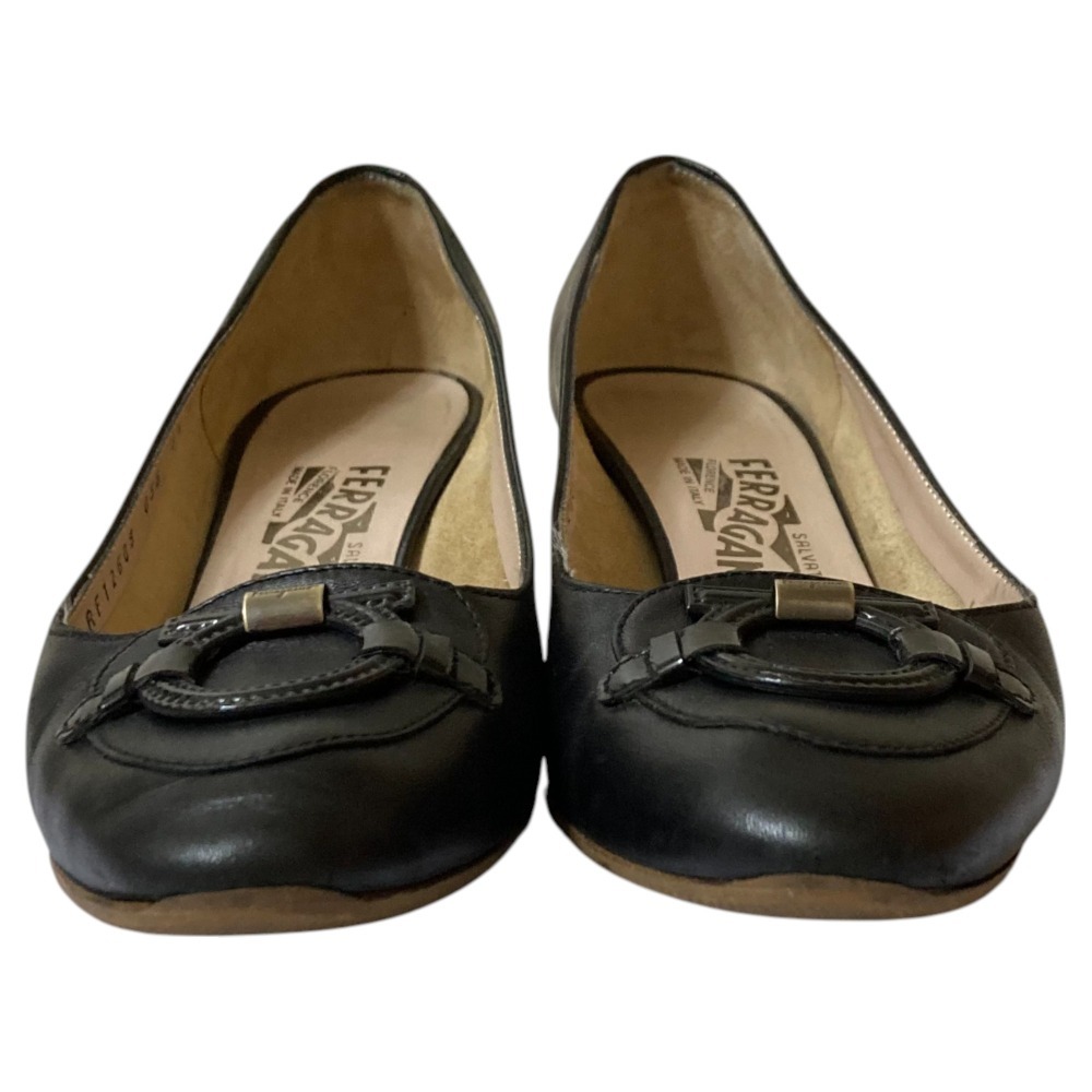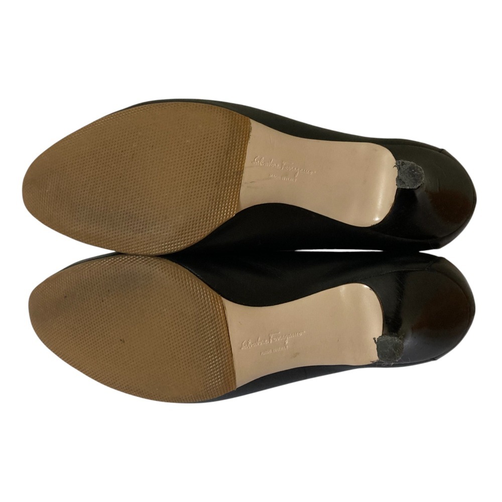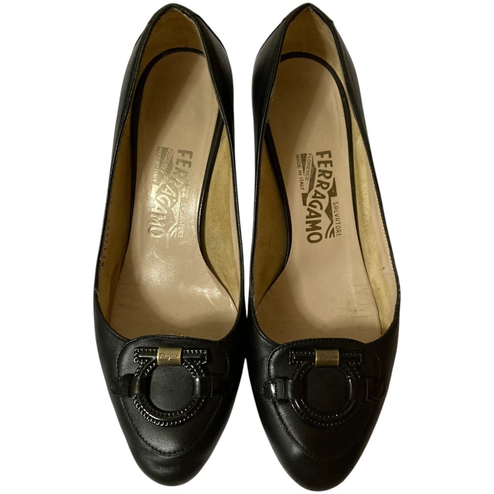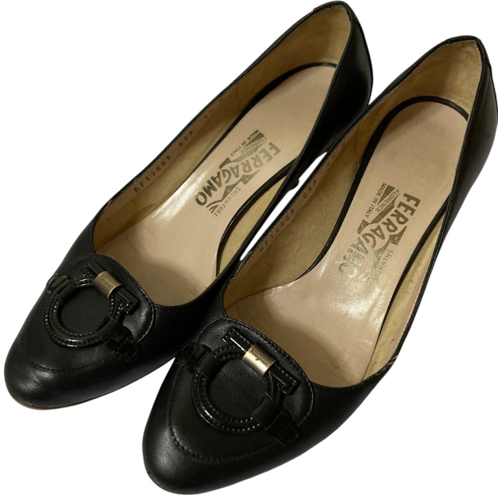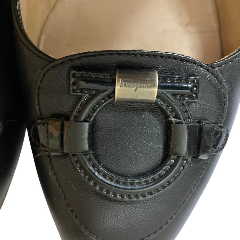 良品 Salvatore Ferragamo サルヴァトーレフェラガモ ガンチーニ レザー アーモンドトゥ パンプス 6.5 D 約24cm ブラック