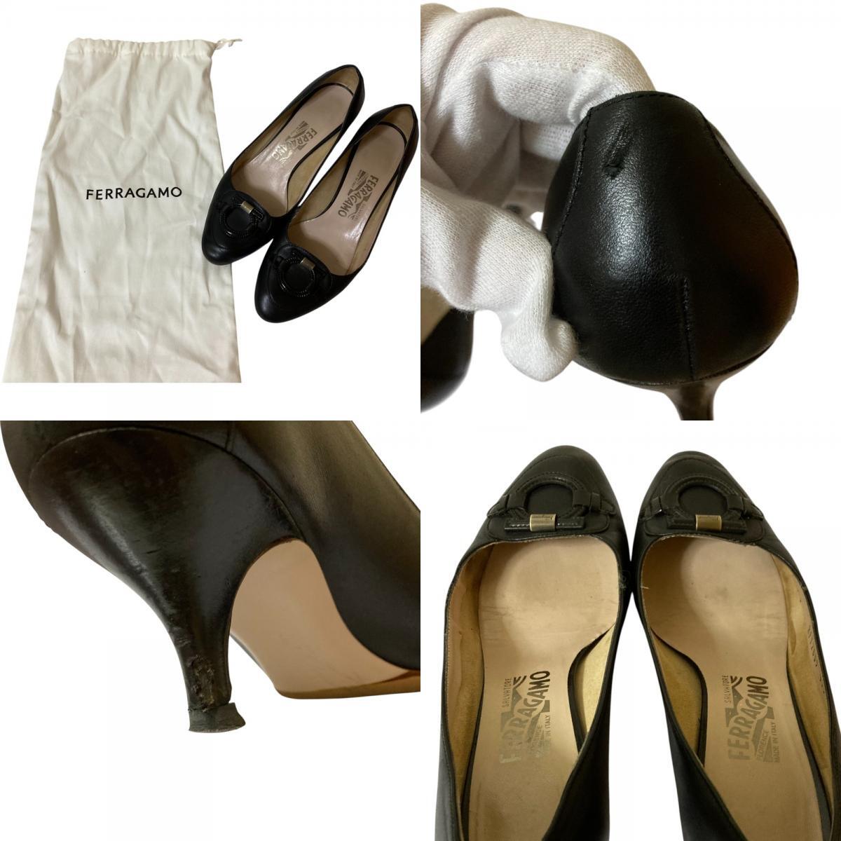 商品名:Salvatore Ferragamo サルヴァトーレフェラガモ ガンチーニ レザー アーモンドトゥ パンプス 6.5 D 約24cm ブラック