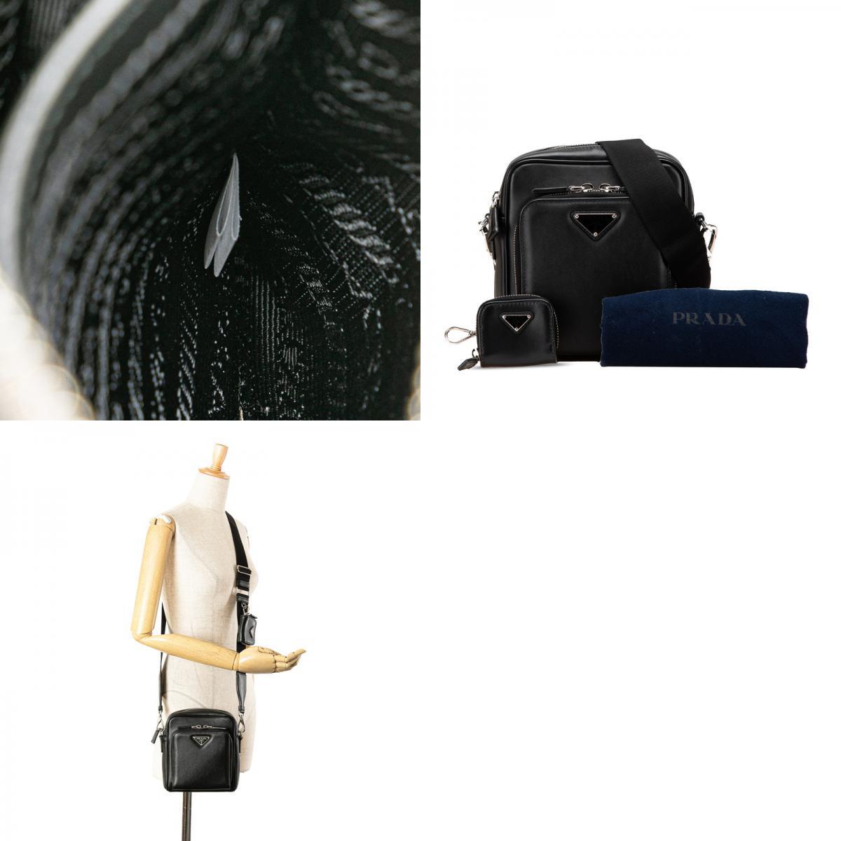 プラダ トライアングルロゴ 斜め掛け ショルダーバッグ 2VH168 ブラック レザー レディース PRADA 【中古】