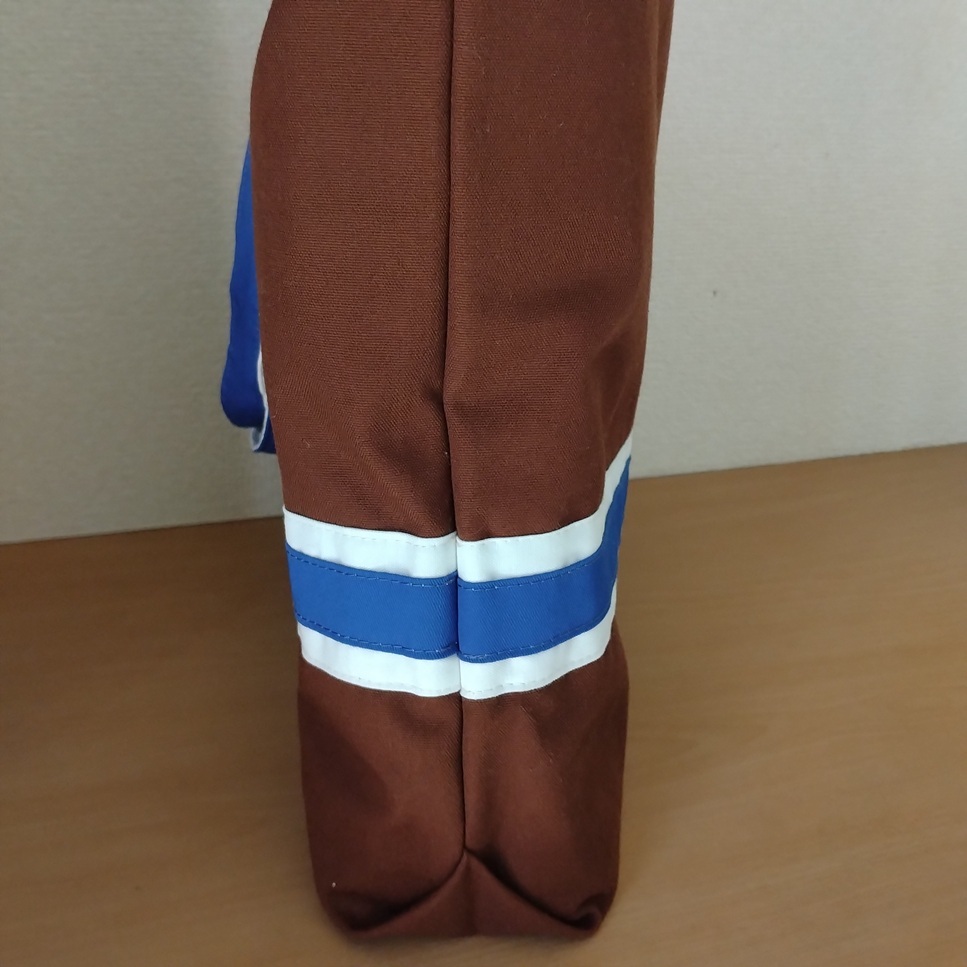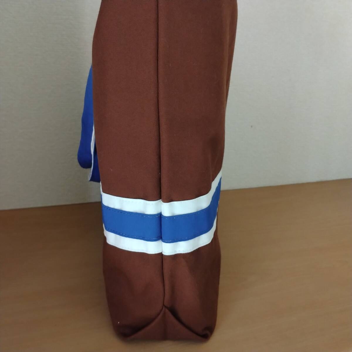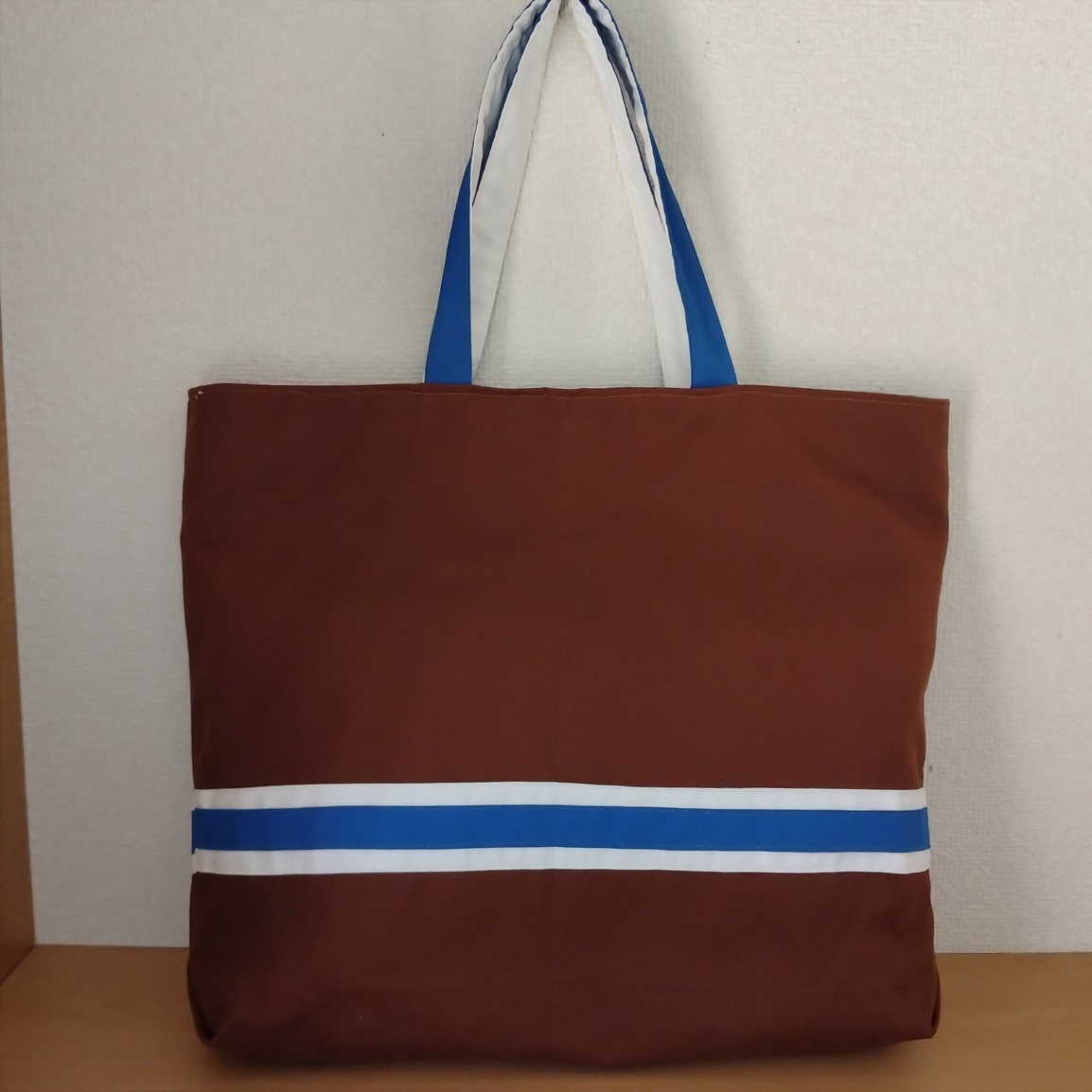 ハンドメイド 大きめ レッスンバッグ コットン製 茶(青白)ストライプ 白青 ハンドメイド 中学年 高学年 男子 Y字です。