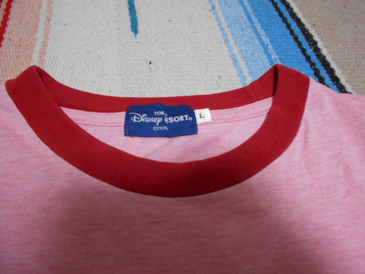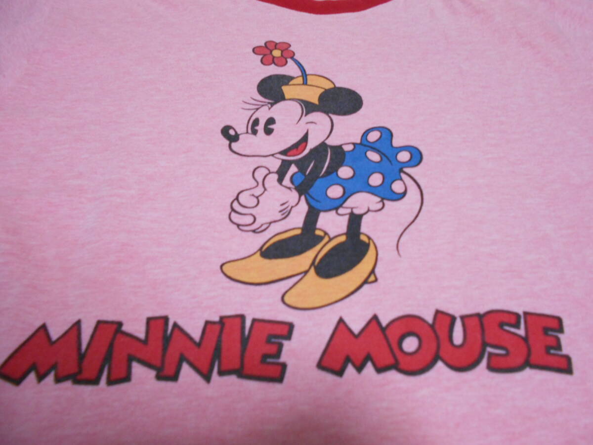 Walt Disney オフィシャル 1970Sデザイン ミニーマウスの稀少図柄ダブルフェイス ロカビリーガール リンガーTシャツ、生産数少なく、現在入手極めて困難