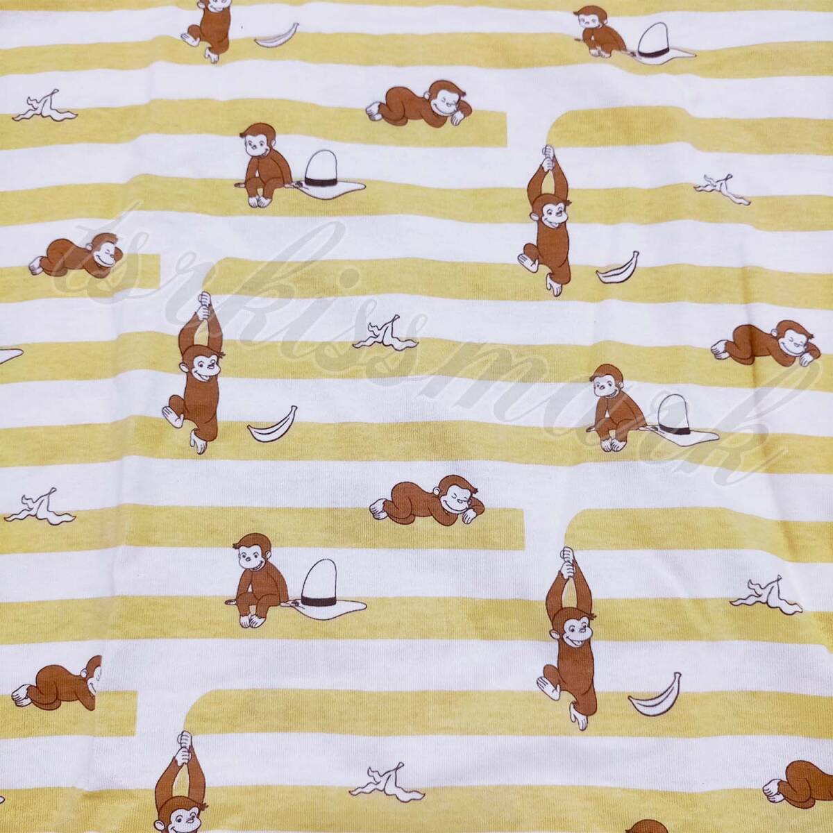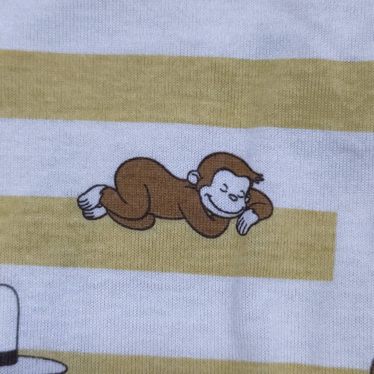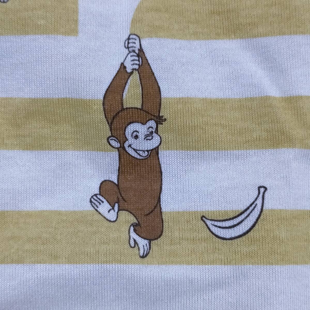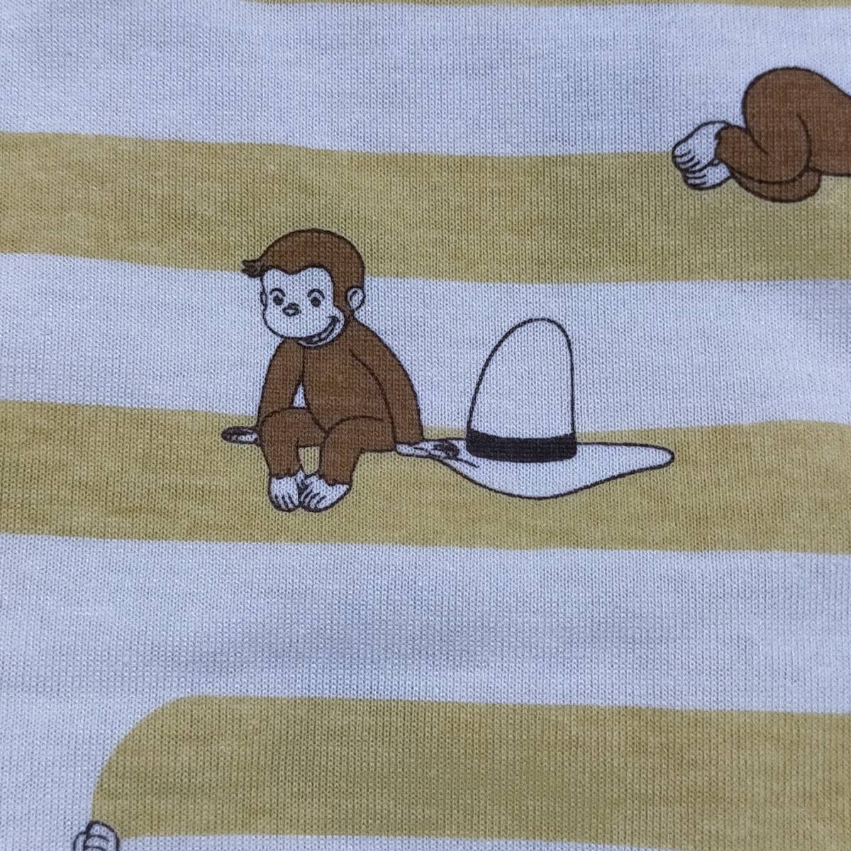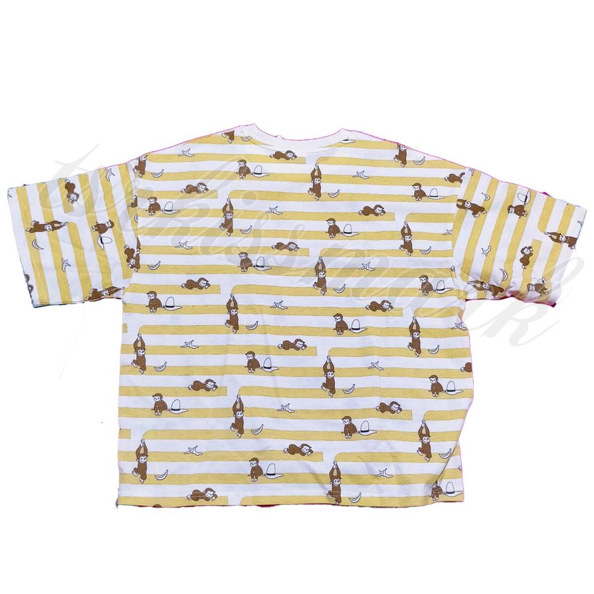 【Lサイズ】おさるのジョージ ボーダー 黄色&白 半袖Tシャツ 丸首