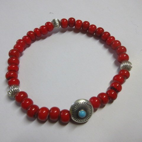 インディアン シルバーコンチョ L ブレスレット 赤ビーズ Msy3113L