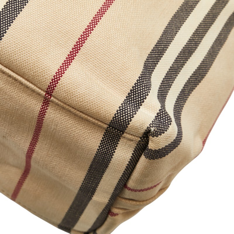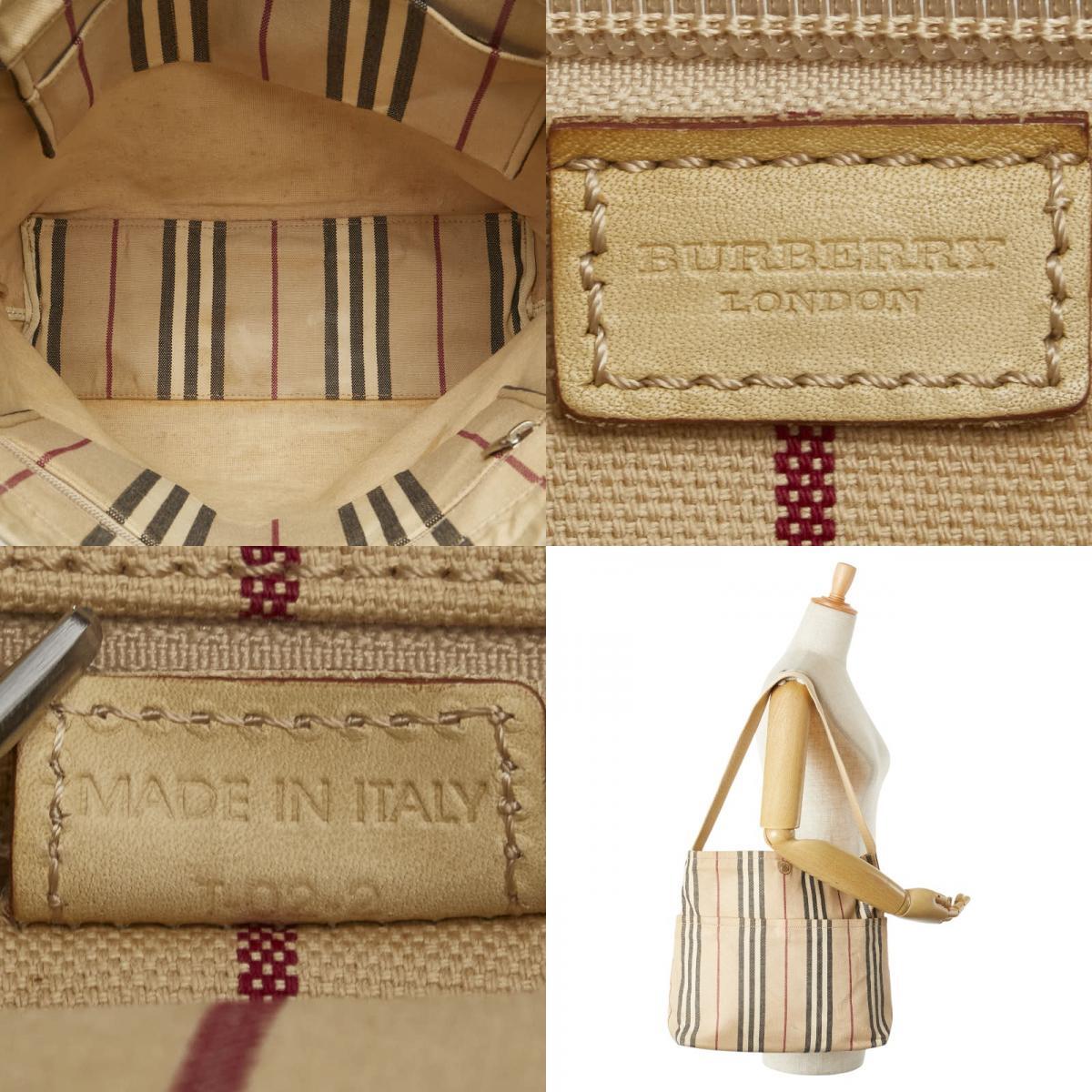 バーバリー ストライプ ワンショルダーバッグ ベージュ キャンバス レザー レディース BURBERRY 【中古】
