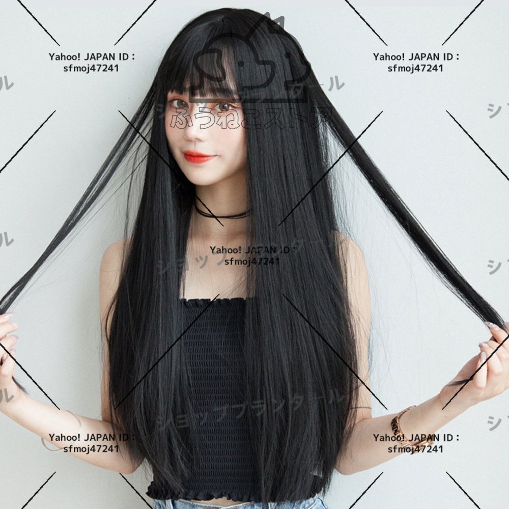 人気推薦★値下げ 韓国風ロングストレート 人毛ウィッグ ネット付き 自然 サラサラ