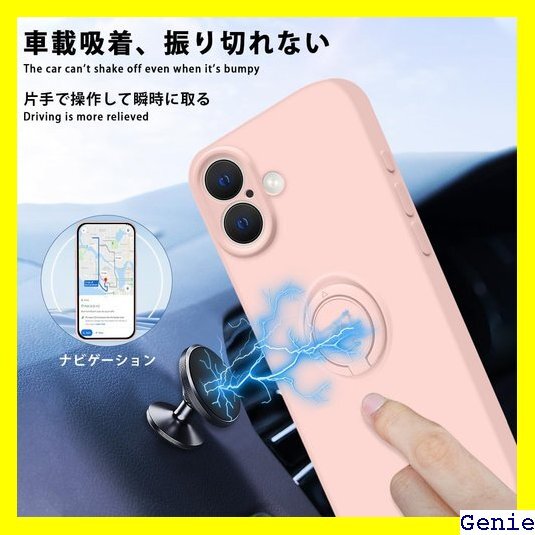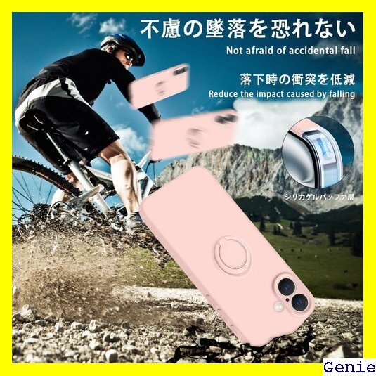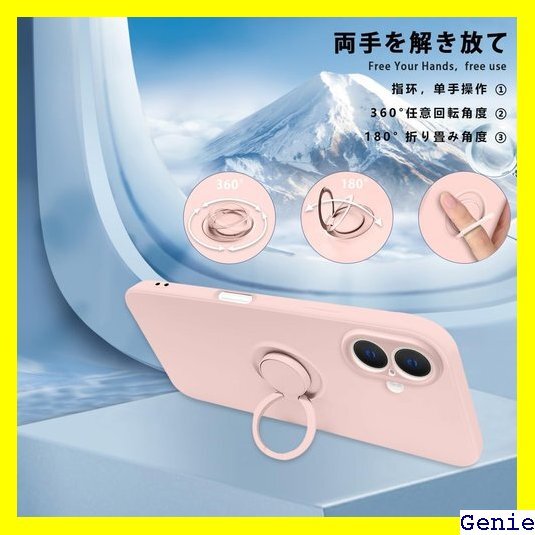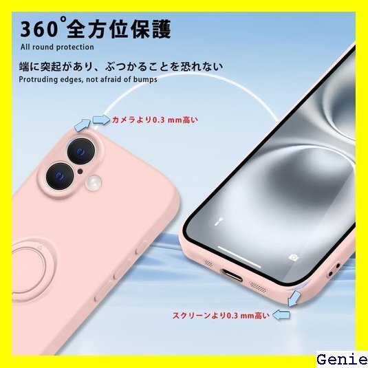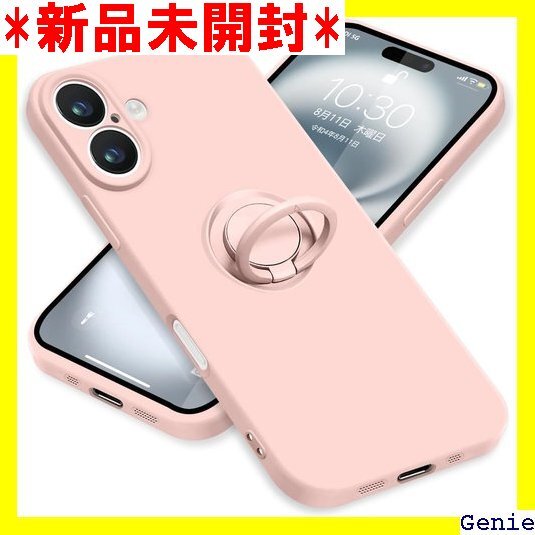 ZHUAZHULE iPhone16 ケース リング付き シリコン アイフォン16 スマホケース スタンド機能 カバー 耐衝撃 レンズ保護 360°回転 車載ホルダー ストラップホール付き 滑り止め 指紋防止 薄型 ピンク 46