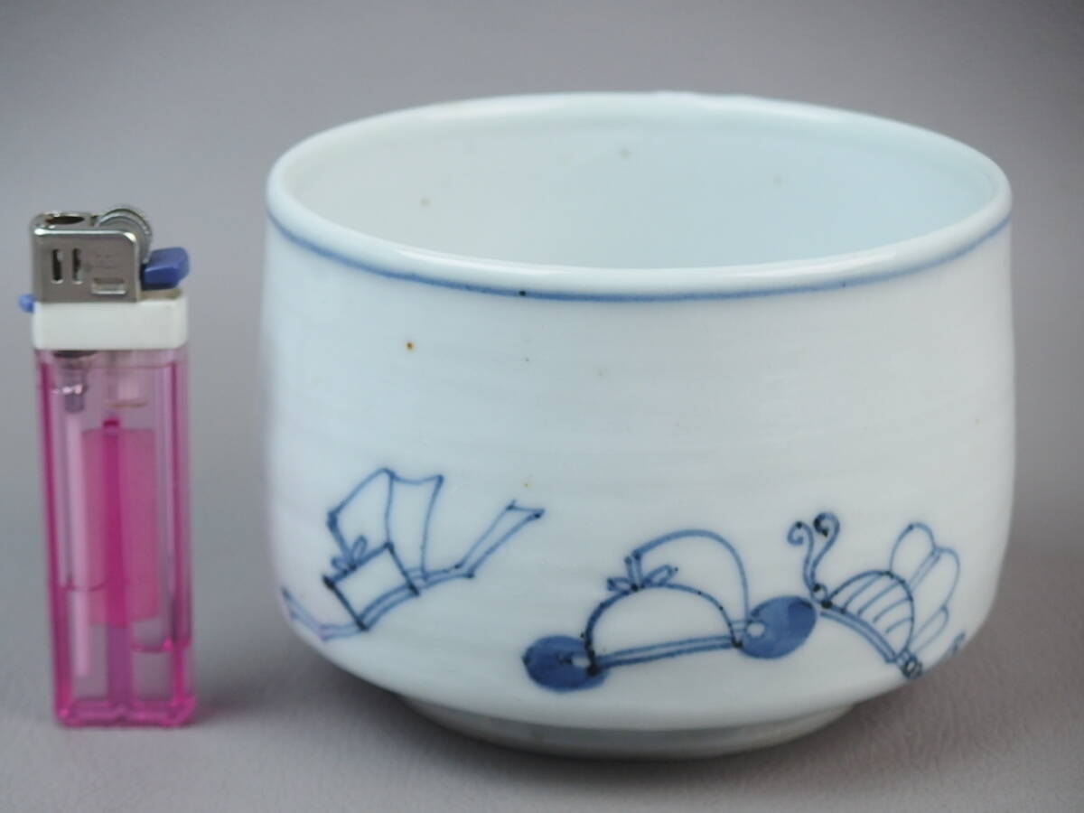 【骨董・茶道具】★須田菁華★★染付烏帽子文茶碗 合わせ箱 gl012vb.4