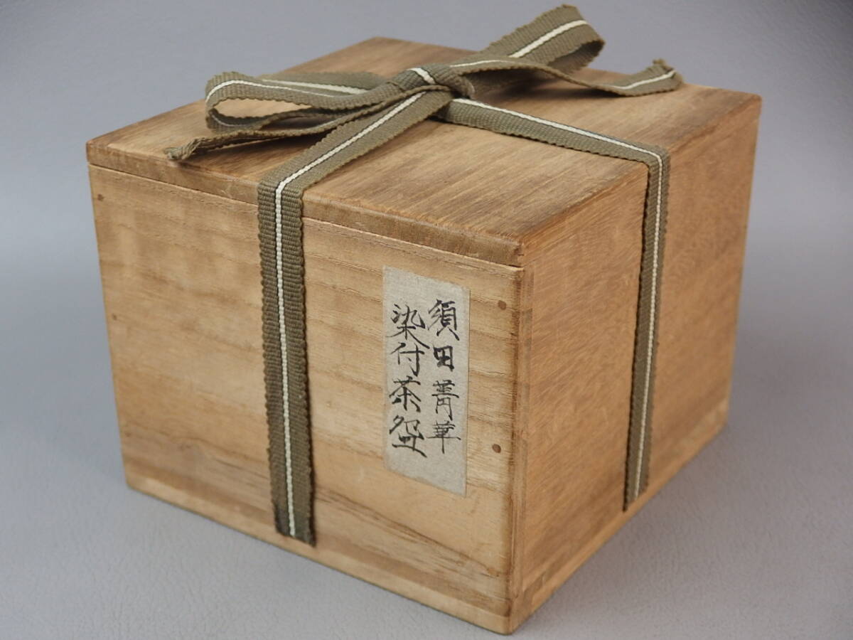 須田菁華、染付烏帽子文茶碗、合わせ箱です。