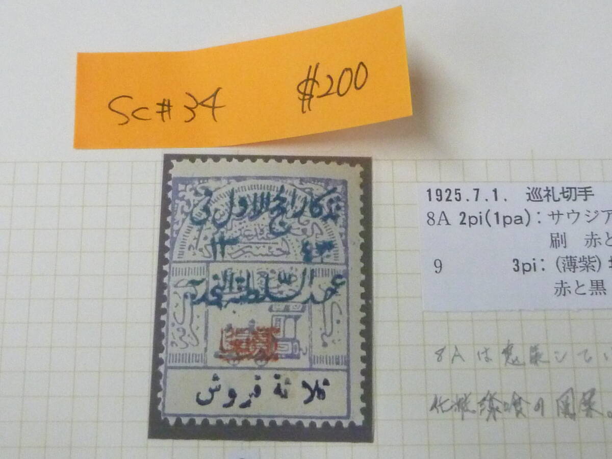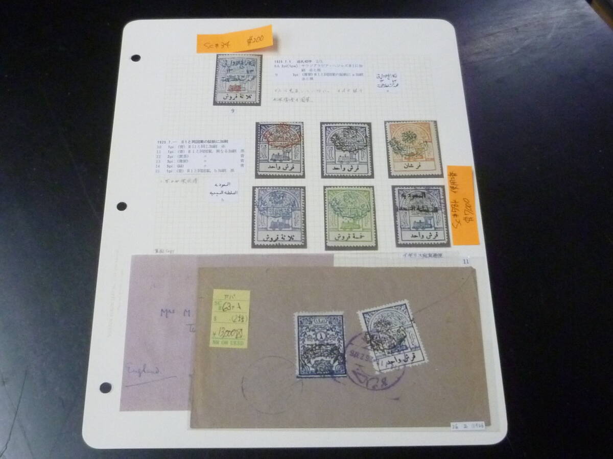 サウジアラビア切手№2 1925年 SC#34・他 【SC#58k(使用済)=SC評価 $7,000含】 計7種+カバー 未使用NH~OH・VF ※説明欄必読