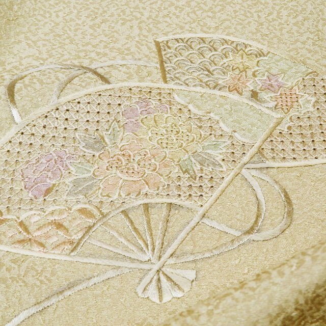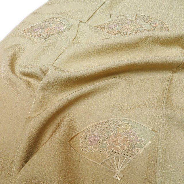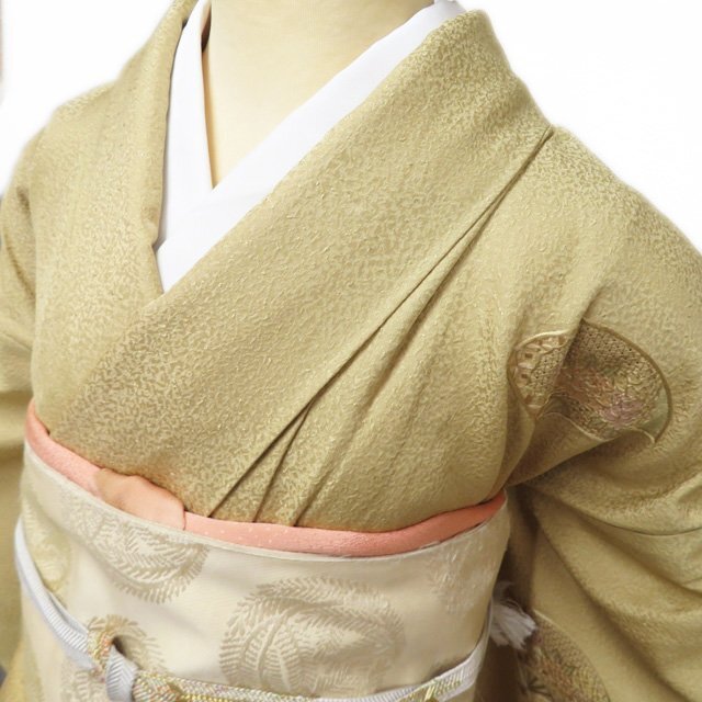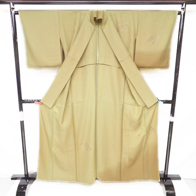 丈160cm(+8) 裄64.5cm(+3) 袖丈48.5cm(+2.5) 前幅23.5cm 後幅29cm ※サイズのお直し、承ります。 (身丈のみ、身幅のみのお直しは承っておりません) ※身丈は肩から測っております。 ※()内は※()内の数字はお直しで直せる長さを示しています。お仕立て直しの場合は胴裏を付け替えるため、さらに長く直せる場合があります。詳しくはお問い合わせください。 単位:cm 素材 正絹 商品ランク C ●着用時期 6月、9月(+-2週間) ●着用シーン 披露宴、パーティー、お出掛け、式典など ●お色 麦藁色 多色 内襟全体に点汚れがございますが、表側はしつけ糸の付いた綺麗なお品物です。 居敷当の付いていないお品物です。 写真に写っている着物のみの販売で帯等の付属品はついておりません。 一部商品は実店舗・他サイトでも並行して販売しておりますので売り切れの際はご了承ください。 その他多数販売中 ku- | ||||||