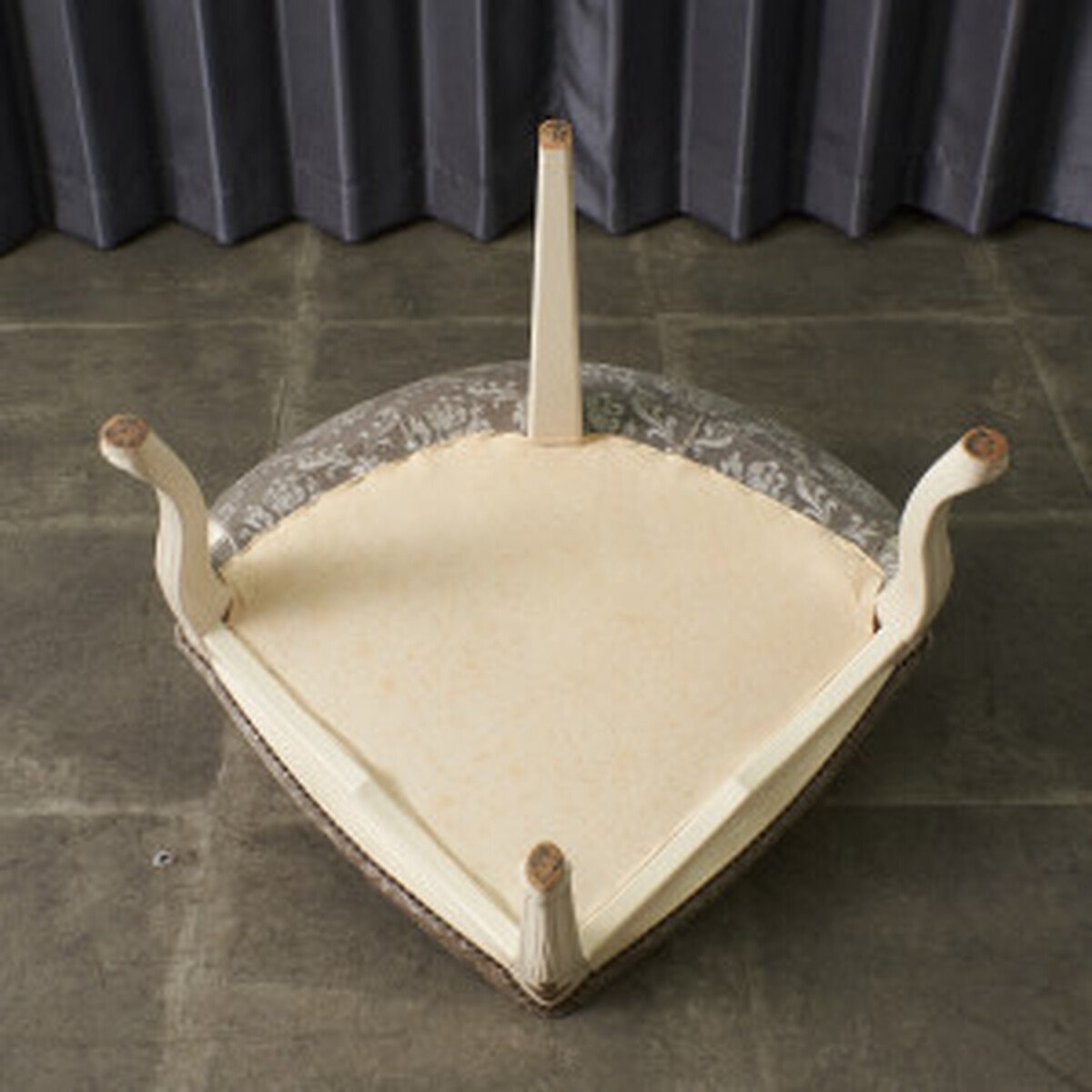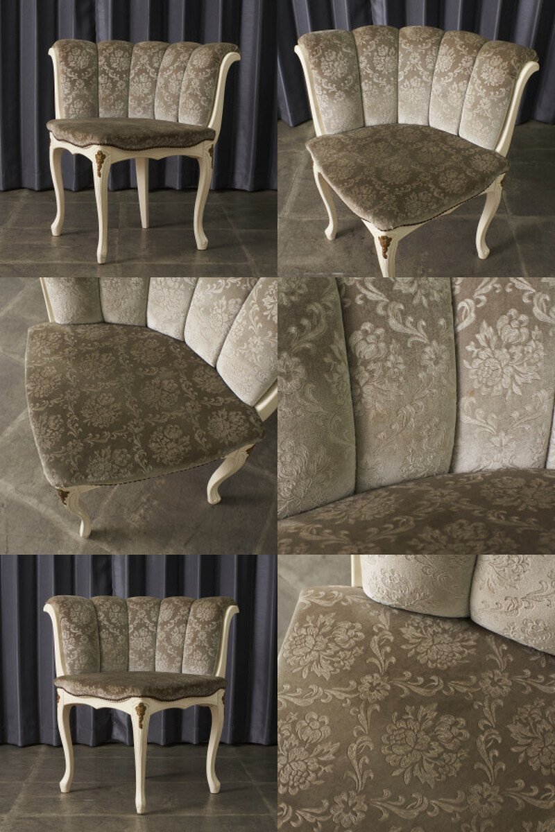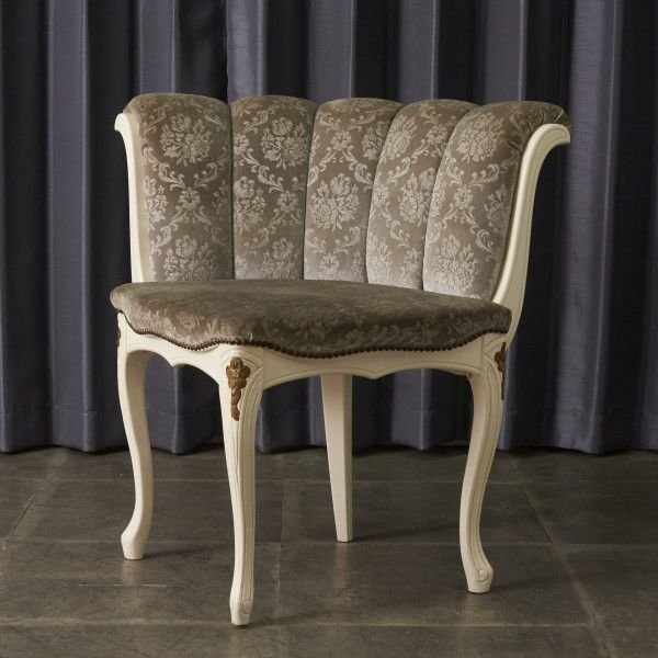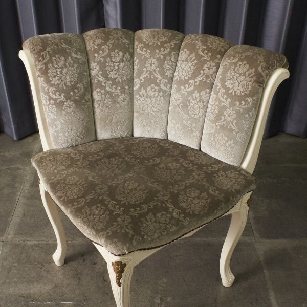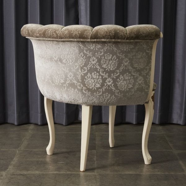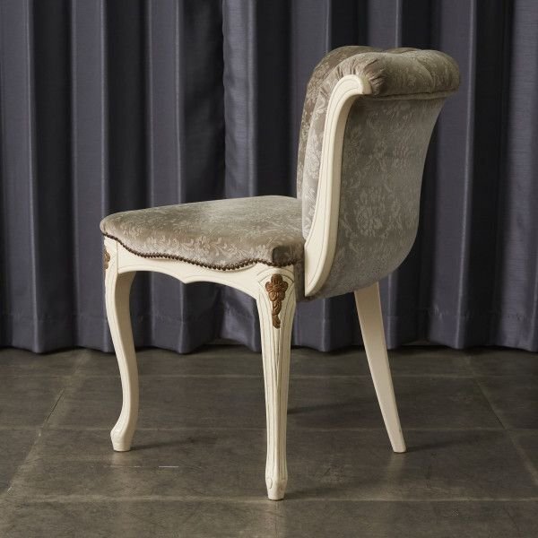 随所に美しいディテールを備えたシャビーシックチェア。古き良き西欧の伝統を感じさせるクラシカルなデザインで、使い込まれて程よく古びた風合いが素朴で優しい雰囲気を演出します。