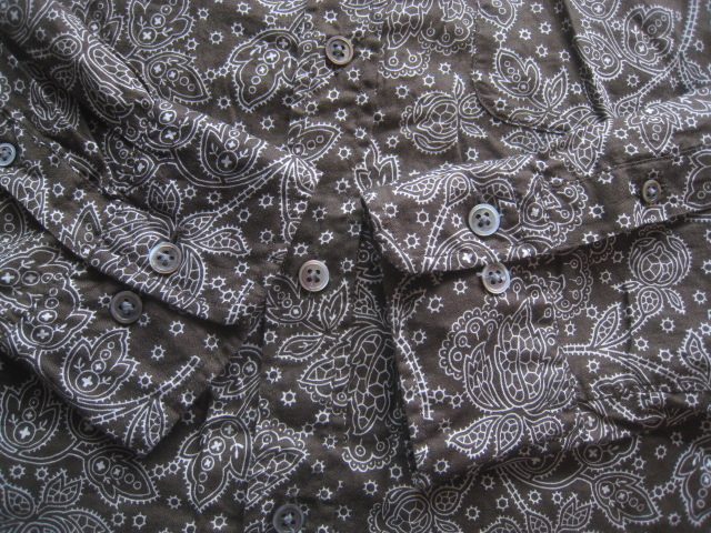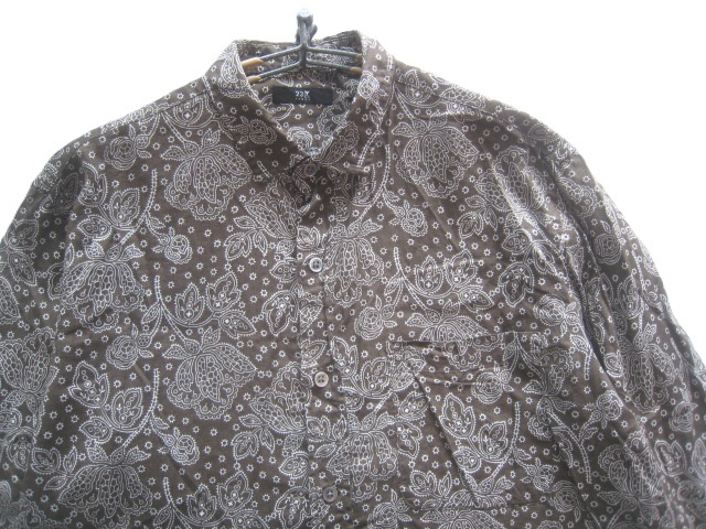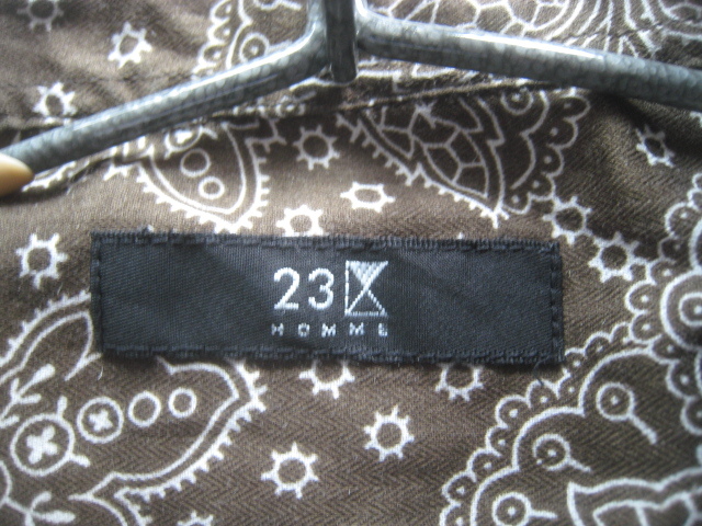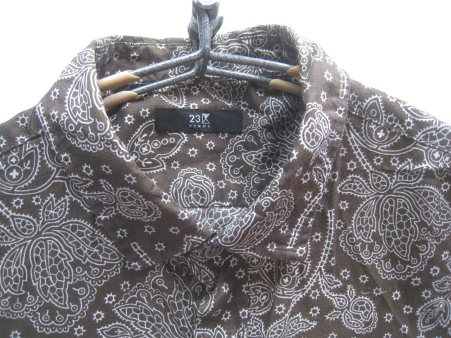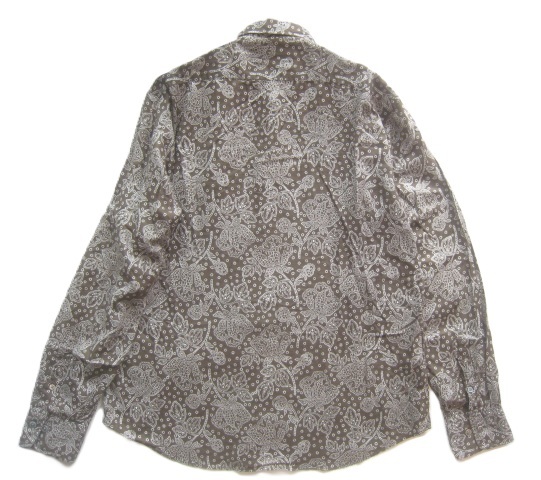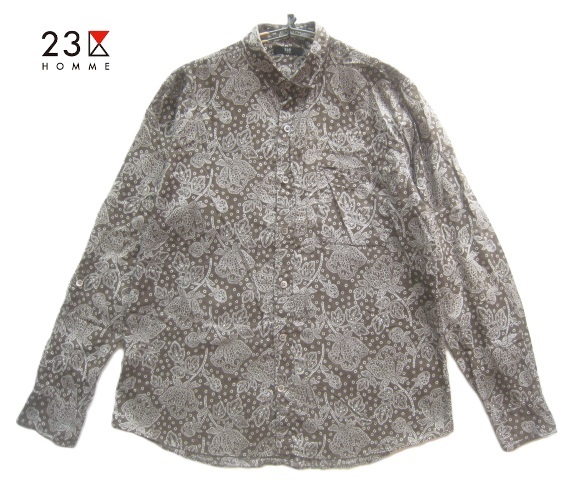 美品!!23区オム 23区HOMME*美シルエット 麻10% ペイズリー柄リネンコットンシャツ 48 実寸M 茶×白 トラッド アイビー