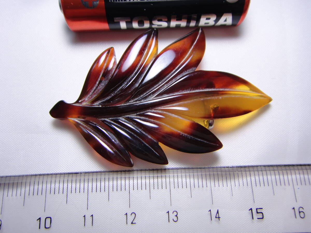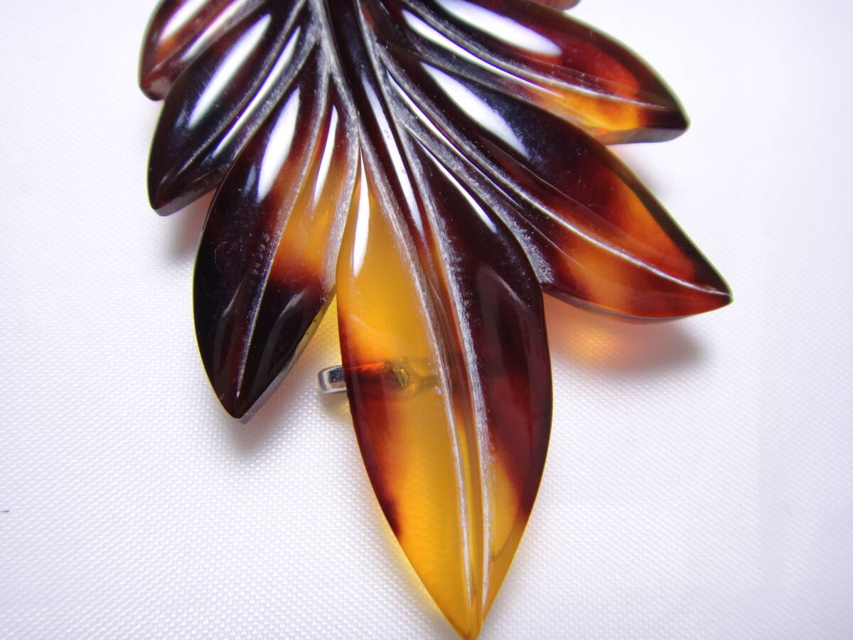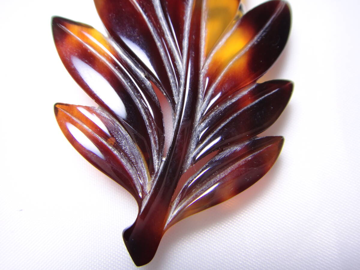 本べっ甲 鼈甲 ベッコウ 帯留め 葉っぱ レトロ アンティーク ヴィンテージ Y696