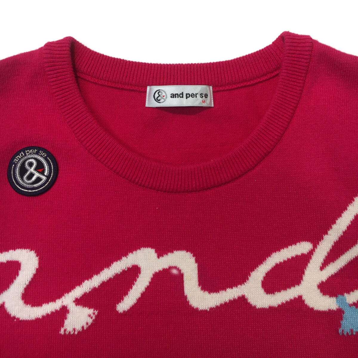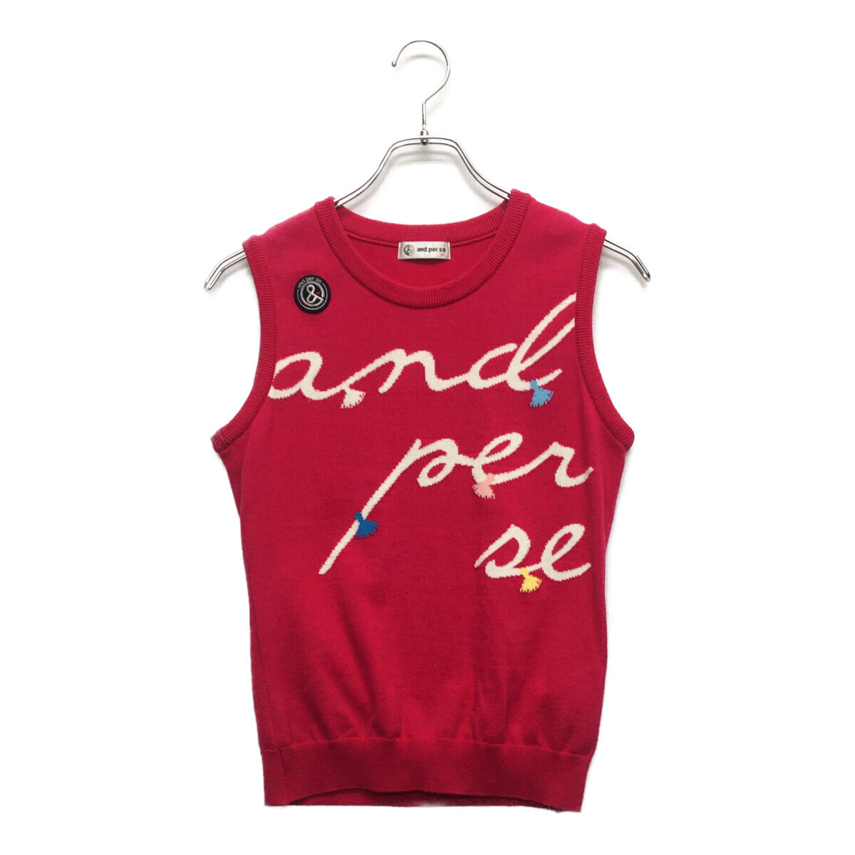 coco 中古【SALE】アンパスィand per se レディース ベスト M ピンク クルーネック ニット ロゴ レターパックプラス発送可 106992