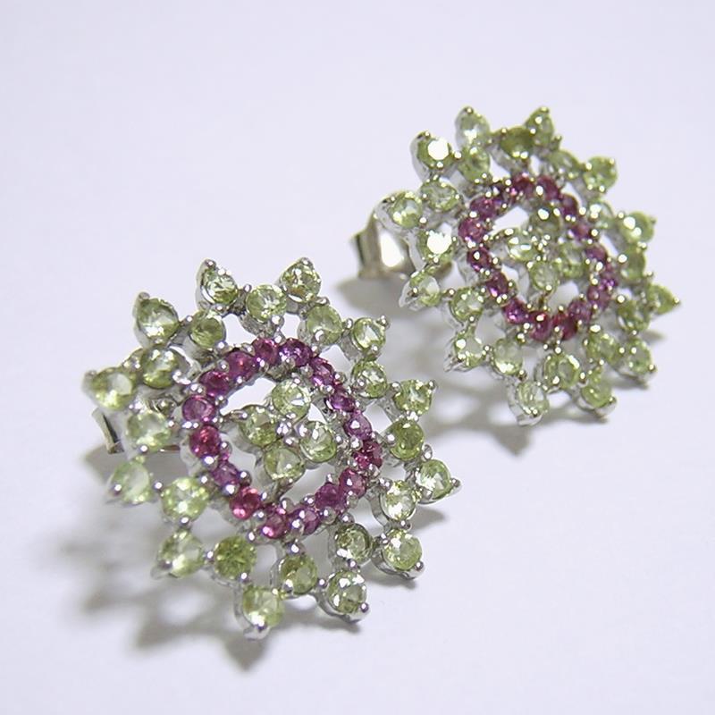 天然ペリドットと天然ロードライトガーネットを使用したピアスです。 【中石】天然ペリドット 【産地】パキスタン産 【処理】非加熱 【カットラウンドファセットカット 【脇石】天然ロードライトガーネット 【重さ】3.5g 【サイズ】縦19mm×横19mm ポスト長さ10mm 【素材】シルバー925 (14金ホワイトゴールド仕上げ) 【刻印】925 【状態】新品 |