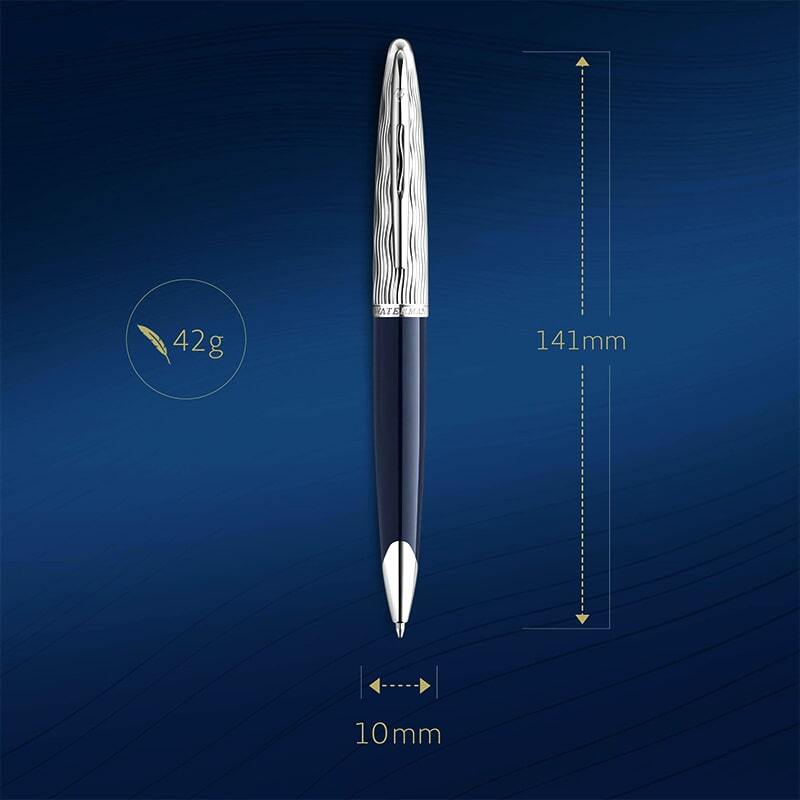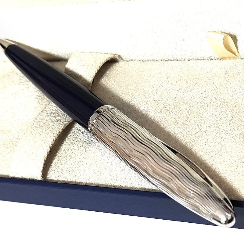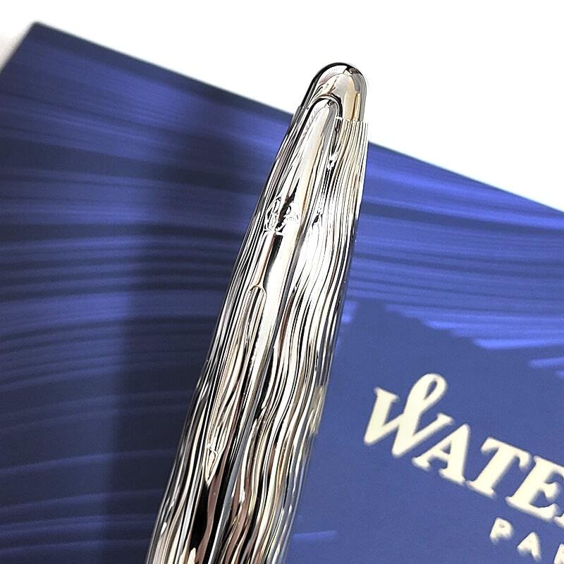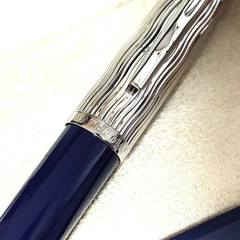 | 素材 | ボディ:ブラス ディープブルーラッカー仕上げ キャップ:ブラス ウェーブパターン チーゼリング パラジウムプレート仕上げ クリップ/トリム:シルバープレート仕上げ |